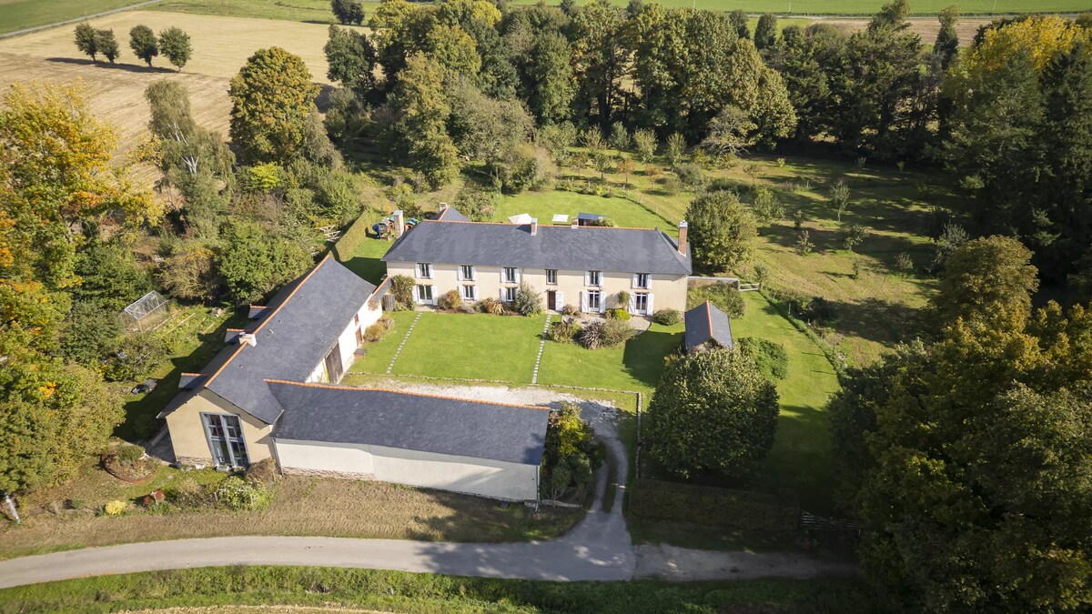À mi-chemin entre le Mont St Michel et les châteaux de la Loire ! Sur un sentier de randonnée, vous serez confortablement logés au calme de la campagne et en toute indépendance. Vous aurez à votre disposition un joli salon avec 1 canapé et 1 table, 2 chambres ainsi qu'une salle de bain. Vous disposerez d'une terrasse privée face aux pâturages. Seul, en couple, avec vos enfants ou un couple d'amis, nous serons heureux de vous recevoir et de vous offrir un petit déjeuner avec nos produits maison.