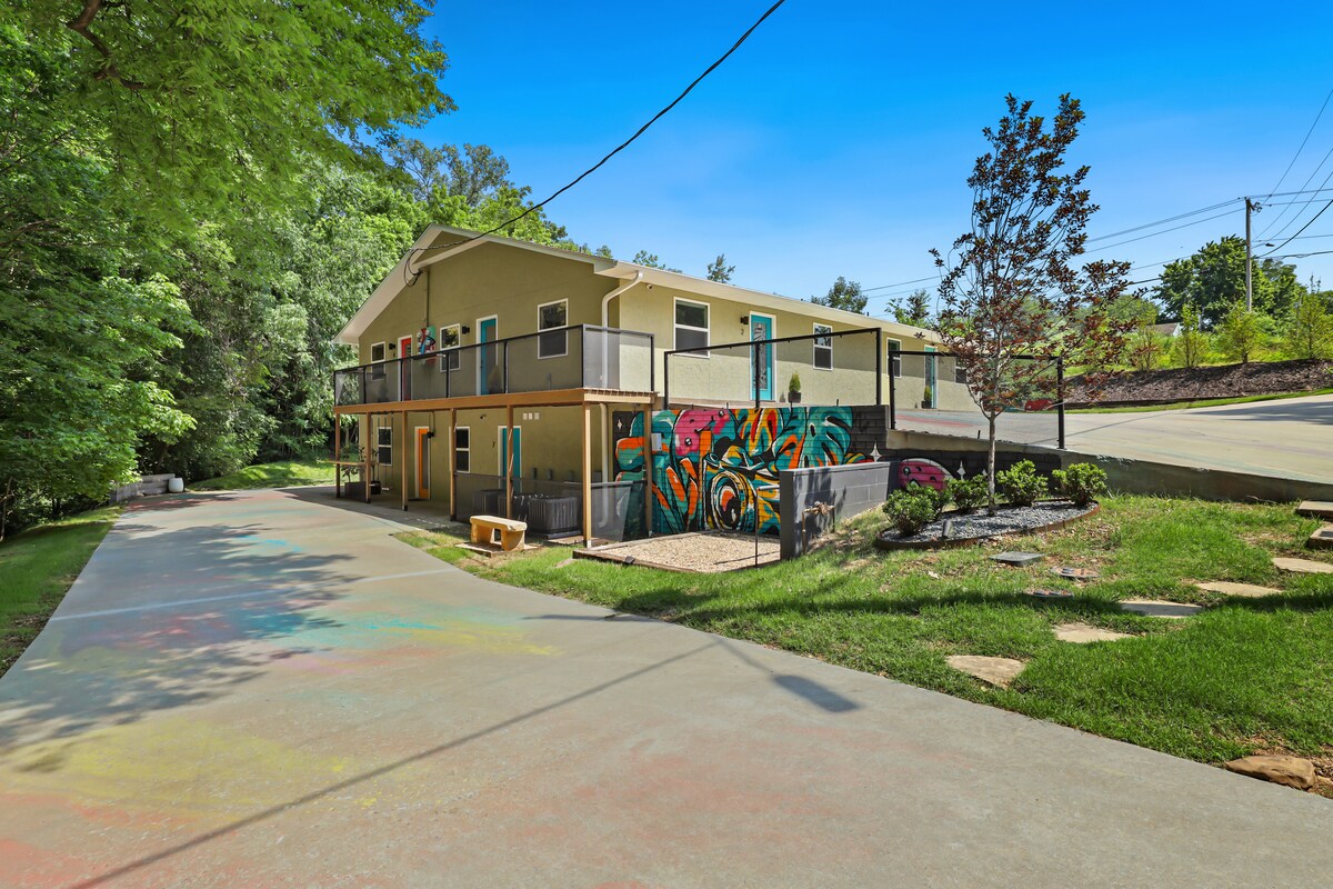 Uživajte u boravku u jedinom luksuznom stanu koji se nalazi samo dva bloka od centra Rodžersa. The Penthouse in Downtown Rogers is a modern and style apartment with all the amenities you need for a short stay or a long retreat: sumptious Sleep Number bed and bedding, gourmet kitchen and outdoor grill area, luxe shower and outdoor hot tub with a outdoor fire pit to boot. Samo 3 bloka od parka Railyard mountain bike, kratka staza do jezera Atalanta.