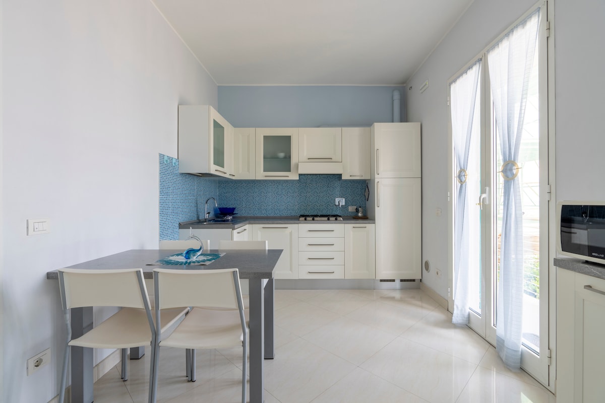 dvosobni stan od oko 70 kvadratnih metara sa dva kupatila i dvije terase potpuno renovirane. nalazi se na 3. i posljednjem spratu u stambenom kontekstu sa privatnim parkingom. je na dva nivoa. opremljen sa svakom udobnošću omogućava smještaj do 7 osoba. na donjem spratu se nalazi jedan kauč na razvlačenje i dvostruki, dok se na gornjem spratu nalazi bračni kauč na razvlačenje i 2 kreveta za jednu osobu. posteljina i peškiri su dostupni. udaljenost od mora 300 metara.