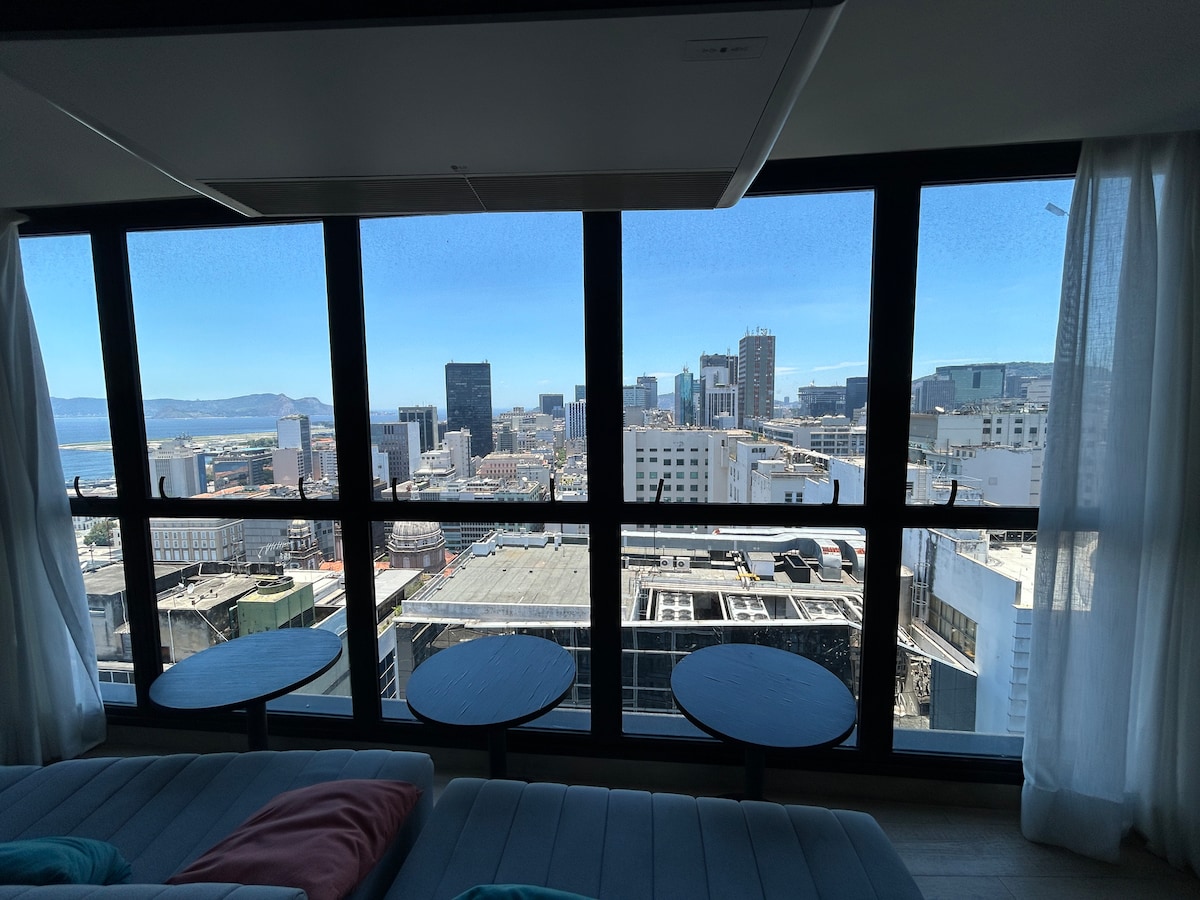Otkrijte šarm mola Maua u ovom modernom i gostoljubivom studiju s pogledom na most Rio-Niterói! Idealno za 4 osobe, nudi udoban bračni krevet, kauč na razvlačenje, potpuno opremljenu kuhinju i kupatilo. Uživajte u udobnosti boravka u srcu grada uz jednostavan pristup lokalnim atrakcijama. Savršeno za udoban i praktičan boravak. Rezervišite sada i doživite najbolje od Rija u udobnosti i stilu!