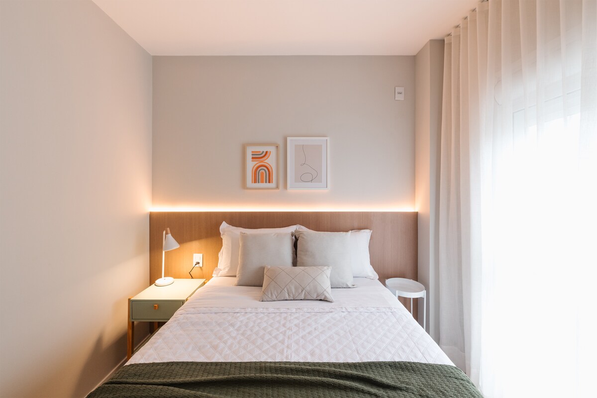 Dobro došli u Pelotas, stari grad sa mnogo mogućnosti za slobodno vrijeme. Prostor je savršen za 2 osobe, ali može da primi do 4 osobe. Potpuno namješteni, imaćete sve što vam je potrebno za udobne, tihe i prijatne dane u čistom, tihom, dobro osvijetljenom i organizovanom prostoru. Ima toplu/hladnu podijeljenu sobu, Wi-Fi, Smart TV 32", kompletnu kuhinju s različitim kućnim aparatima, posteljinu za krevet i kupatilo, fen za kosu, električnu grijalicu za peškire, fotelju s masažnim sredstvom.