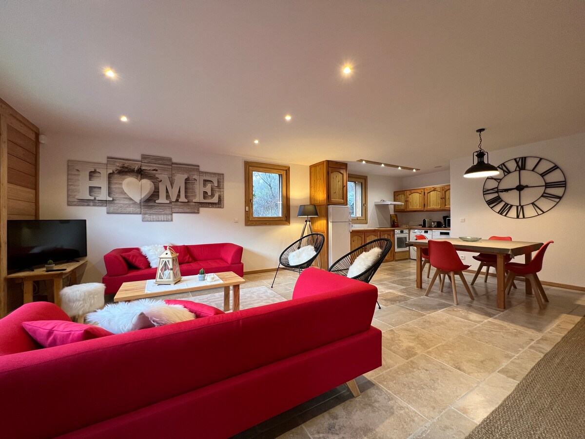 Prekrasan stan u prizemlju tipične kuće Valouise. Šarm starog sa svim udobnostima 21. veka. Direktno na jugu. Veliki balkon sa pogledom na planine i ski-staze Pija Svetog Vinsenta. Terasa, velika bašta, zatvorena garaža za bicikle / motocikle. Nova kuhinja WI-FI. Led TV 102 cm Obezbeđena posteljina, peškiri, peškiri za čaj. Mirno i tiho područje u blizini prodavnica; mini pijaca, sportske prodavnice, apoteka ...