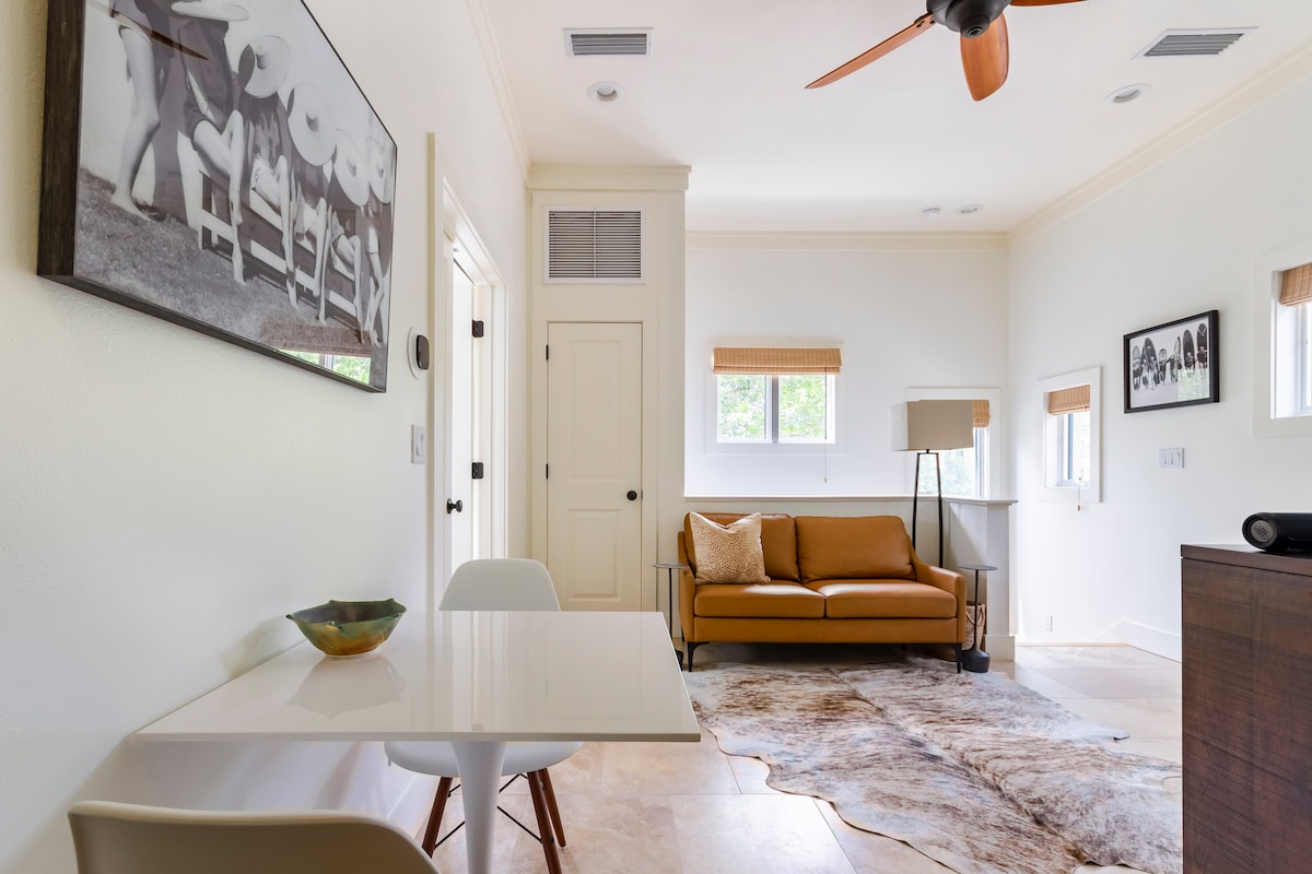 Istražite centar Pensakole i posjetite vrhunske bijele pješčane plaže Pensakole iz ove udobne kuće za prevoz koja se nalazi na pješačkoj udaljenosti od restorana, prodavnica, muzeja i noćnog života. Kameni podovi, mnogo prirodnog svjetla i visoki plafoni. Opustite se na privatnom balkonu dok pijuckate jutarnju kafu nakon mirnog noćnog sna u udobnom krevetu s visokokvalitetnom posteljinom. HD TV i bežični JBL zvučnik za reprodukciju melodije. Kompletna kuhinja sa svime što vam je potrebno za spremanje obroka. Dovoljno prostora u ormaru za sve vaše stvari i mašinu za pranje i sušenje veša u punoj veličini.