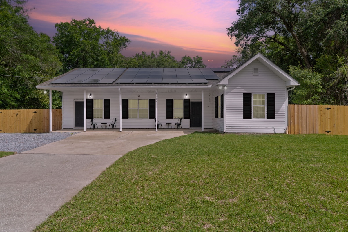 Odabrani stil na pješačkoj udaljenosti od barova i restorana u centru grada, a samo 15 minuta vožnje do plaže Pensakola! Ovaj stan ima potpuno opremljenu kuhinju, zaseban privatni ulaz, brzi internet, mašinu za pranje i sušenje veša, grijani pod u kupatilu i komercijalno ocijenjenu zvučnu izolaciju. Stan se može pohvaliti plafonima od 11 stopa, luksuznom posteljinom i jastucima od 100%pamuka, tuš-kabinom i privatnim namjenskim parking mjestom samo nekoliko koraka od ulaza.