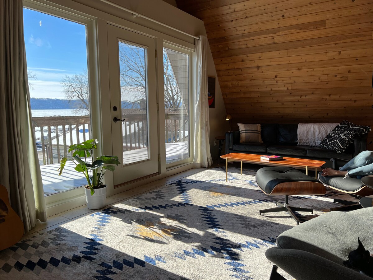 Kuća u obliku slova A na obali jezera Pepin sa prelepim pogledom na reku i jednom od najpogodnijih lokacija za pešačenje u gradu. Nalazi se u istoj ulici kao i kafići Harbor View i The Pickle Factory, a u blizini su i Villa Bellezza i Woods & Co. To je jednostavan i udoban smeštaj za vikende sa venčanjima, romantične izlete ili kreativne odmore. Dobro došli u The Dockside!