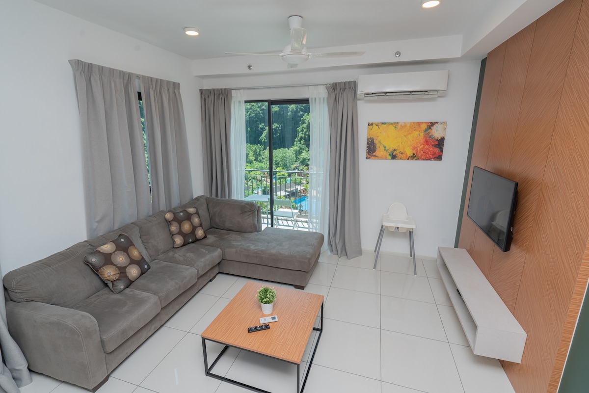 Samo 2 minuta hoda do vodenog parka Ipoh. Naša udobna jednosobna jedinica može primiti 3-4 gosta i nudi kompletan klima-uređaj (uključujući dnevnu sobu), Smart TV sa YouTube-om, aparat za vodu, mikrotalasnu pećnicu i besplatan Wi-Fi. Uživajte u zadivljujućem pogledu na planinu i vodeni park. Uključuje 1 besplatno parking mjesto. Odlično za porodična putovanja ili odmore s prijateljima – udobnost, lokacija i praktičnost sve na jednom mjestu!