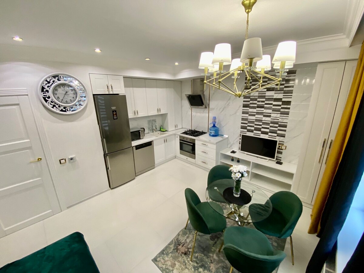 Dvosoban stan u centru. Deset minuta od aerodroma "Boryspil". Međutim, goste neće uznemiravati buka aviona ili automobila. Sobe su svijetle i udobne. Apartman je opremljen svime što vam treba.