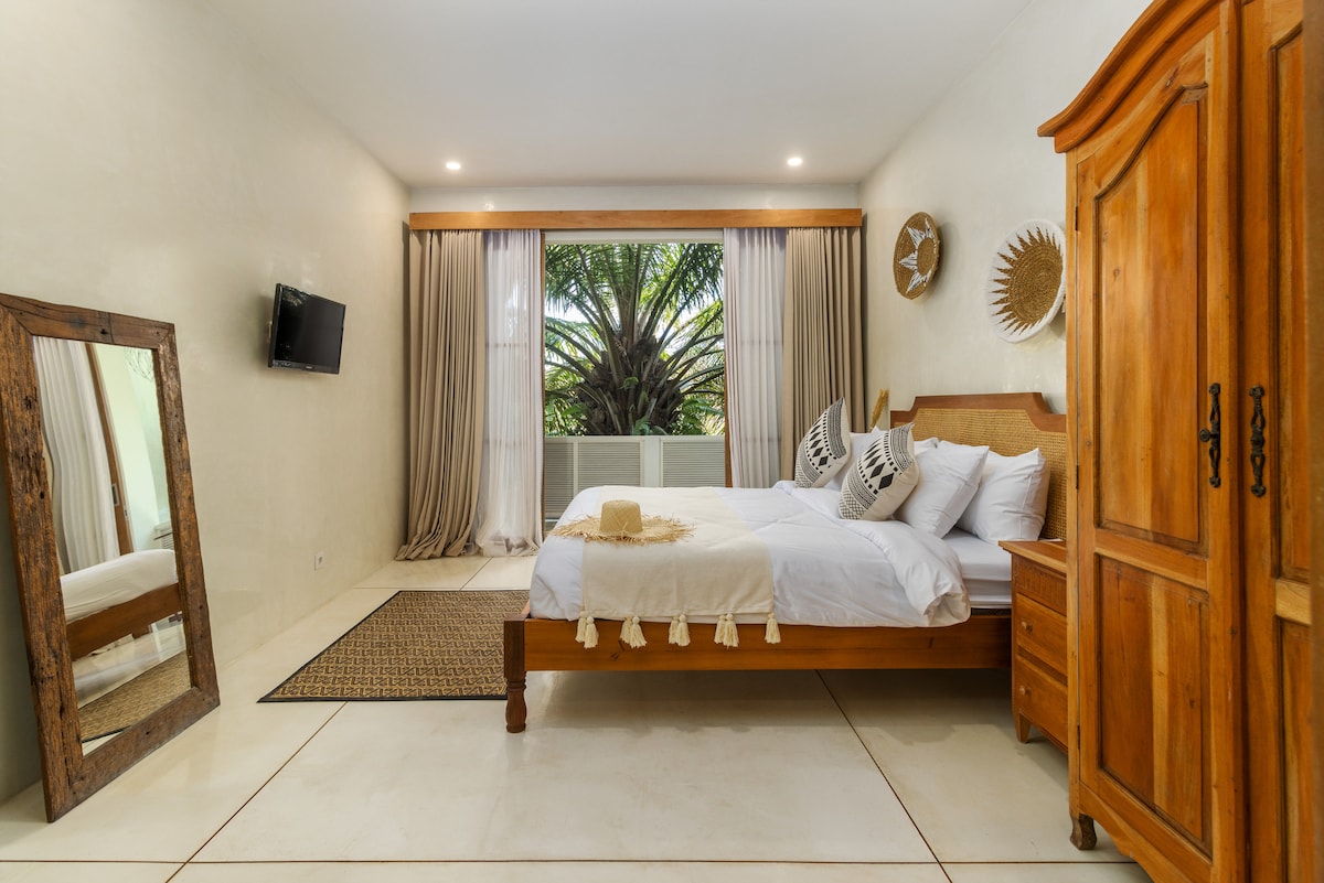 Uživajte u miru i udobnosti u ovoj sobi na drugom spratu u Sani Gardenu, koja se nalazi u srcu Berave u Čangguu. Idealan za dva gosta, ima bračni krevet, privatno kupatilo, klima-uređaj, mini frižider i pogled na tropsku baštu. Gosti mogu da koriste zajednički bazen, a pristup motociklu olakšava pristup plaži, kafićima i restoranima u blizini. Savršeno za opuštajući boravak u blizini svega što Čanggu nudi.