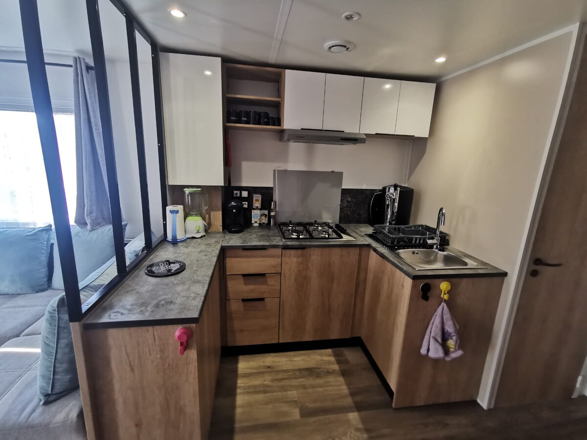 Ce Mobil-home haut de gamme de 43m2, avec sa pièce de vie centrale, allie design contemporain et confort exceptionnel. En retrait, il vous apportera la "zénitude" que vous recherchez avec sa très grande terrasse couverte et fermable, donnant sur un jardin privatif, avec salon de jardin et pergola, à quelques min. des animations et infrastructures du camping. Draps et serviettes fournis sur demande en option payante. Lit bébé fourni gratuitement sur demande. Accès Fun zone payante selon période