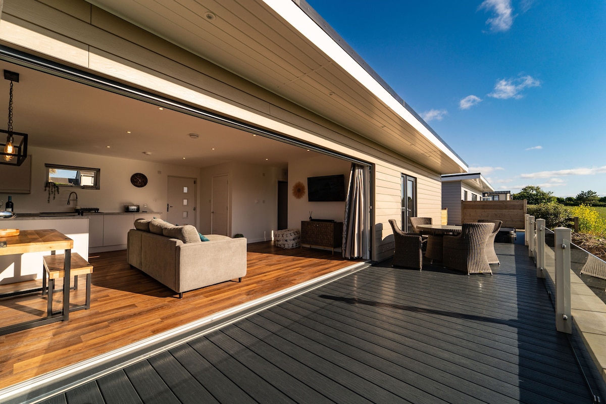 Add a little slice of luxury to your getaway and experience our brand new 'Crantock Lodge'. Two Bedrooms, one with an en-suite and another main bathroom, equipped with top-of-the-range furnishings, stylishly accessorised for your comfort. Designed with an open plan concept, with bi-folding doors to provide you with the best views of the countryside. Dine alfresco on your own private deck or relax in the hot-tub, while soaking in the fresh sea air and basking in those glorious Cornish sunsets.
