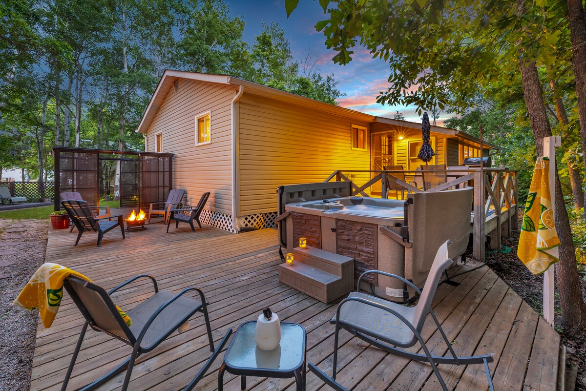 This charming timber-frame beach house offers a cozy, escape just a 1-minute walk to lake and sandy beach. It features a quaint living area, two loft-style bedrooms accessed by ship’s ladders, a full bathroom, and a convenient kitchenette—perfect for relaxed, easy stays. Step outside and you’re right beside a beautiful 10-acre provincial park, boardwalk, dog-friendly beach, tennis courts, playground, and open green space. This is a place to slow down, recharge and feel at home.