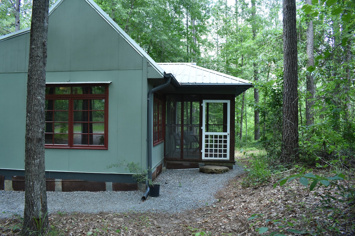 Tranquil country escape on 70 wooded acres. Comfortable, cozy Super Host property has five-star guest ratings. Enjoy hiking trails, deer, birds, and wildflowers. Close to public hunting and fishing. Twenty-eight miles from University of Alabama campus. Only five miles from I 20/59.