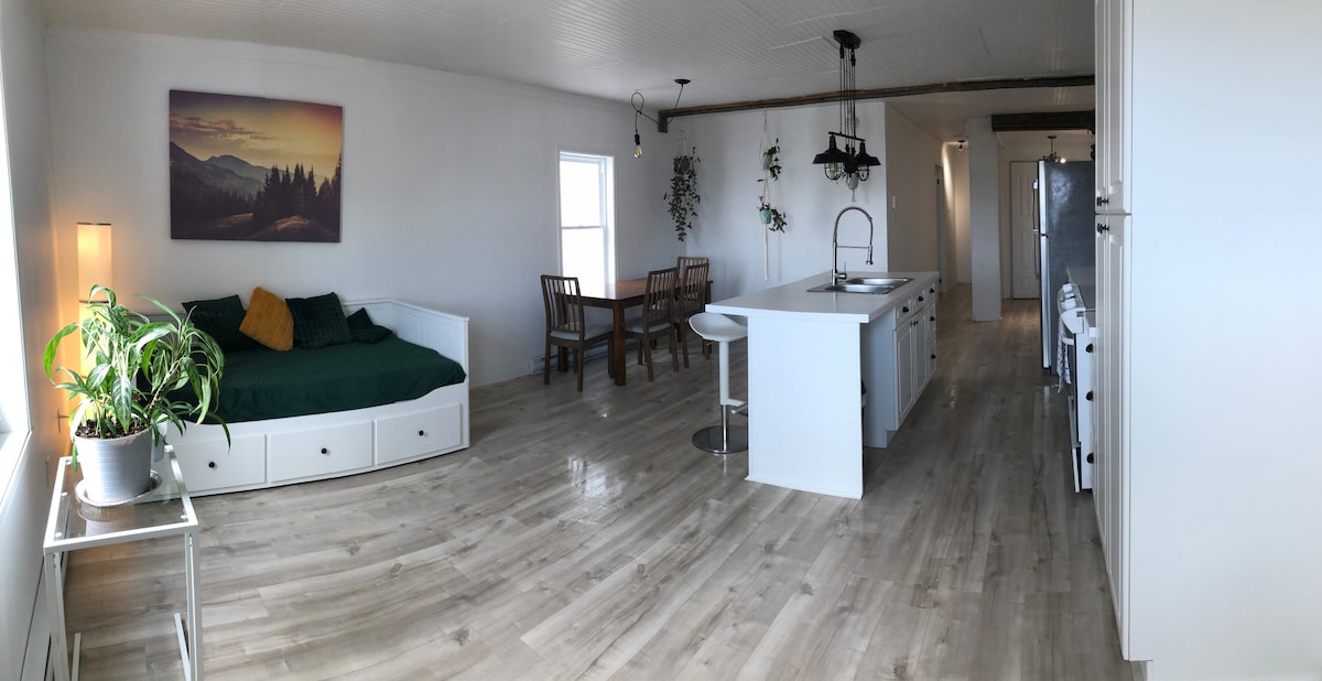 NOVO - najmanje 3 noćenja - Stan se nalazi na kratkoj šetnji od Baie des Chaleurs. Veoma tiho, veoma svetlo. Uključuje 1 spavaću sobu sa bračnim krevetom, kuhinju sa osnovnom opremom, trpezariju i dnevni boravak otvorenog tipa. Sekcijski kauč pruža prostor za spavanje. Ovaj stan je povezan sa našom kućom, ali imate privatni ulaz, kao i privatno unutrašnje dvorište. U blizini svih sadržaja. ZABRANJENO PUŠENJE. Kućni ljubimci nijesu dozvoljeni.