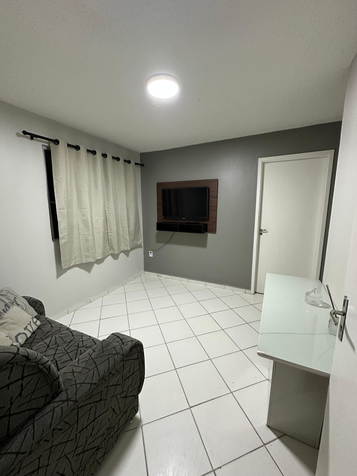 Casa dentro de um condomínio fechado tranquilo com 2 quartos com ar-condicionado. Um ambiente familiar com funcionários de portaria 24h. O condomínio fica colado na avenida principal do bairro, onde existem diversos comércios, mercados, padarias, farmácias, academia, lavanderia, lanchonetes... Além disso, o condomínio fica a cerca de 10 minutos de carro até a orla. Existe uma loja de conveniência 24h dentro do próprio condomínio com vários produtos de mercado.