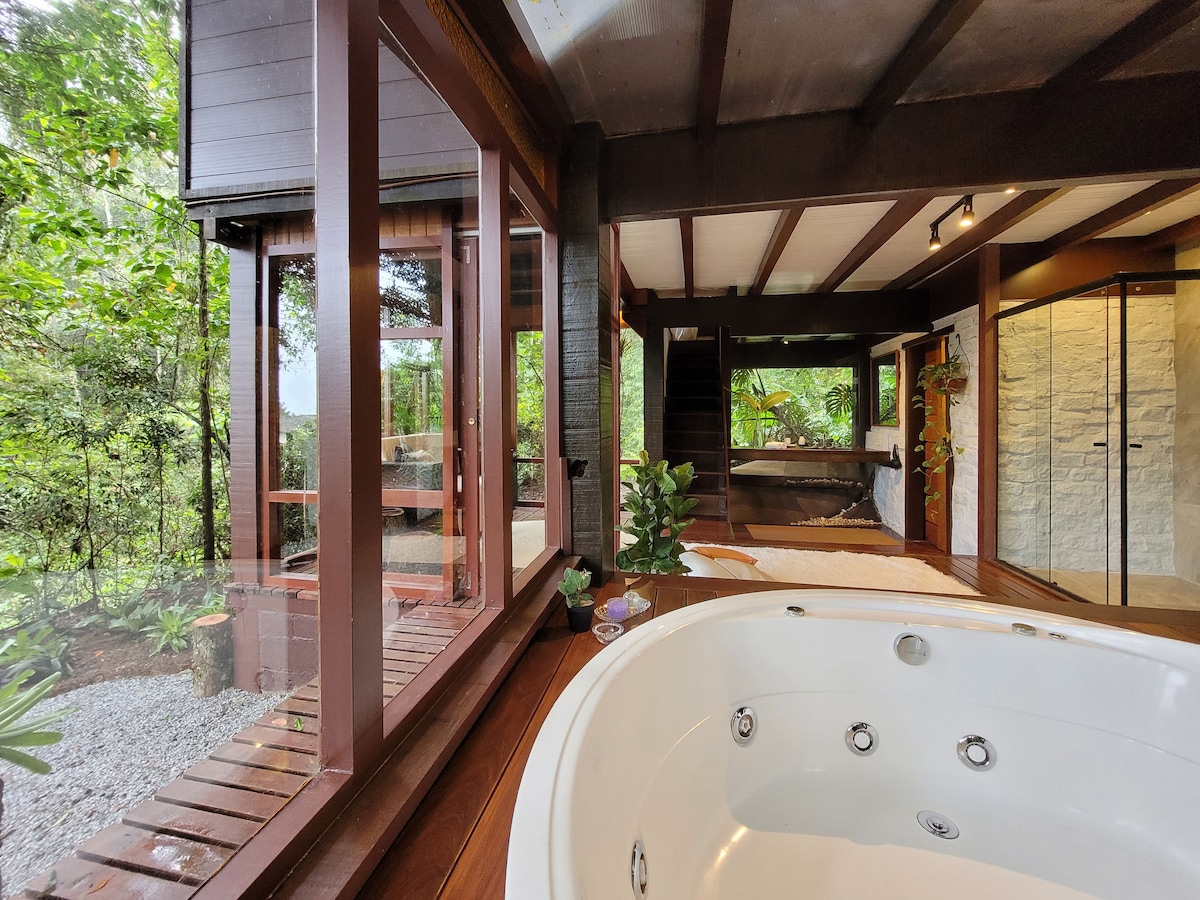 Super romantična koliba u Ararasu, jedno od najšarmantnijih utočišta u planinama Rio de Žaneira. Sa kadom, bazenom, kaminom, podnim kaminom, roštiljem, ležaljkom... Mali komad raja za vas da usporite, opustite se i obnovite energiju. Okružen bujnom prirodom, sa pogledom koji oduzima dah i pun mirom. Brvnara nudi mnogo šarma, sofisticiranosti, udobnosti i impresivne arhitekture. Svaki detalj je osmišljen tako da možete da imate jedinstveno iskustvo!