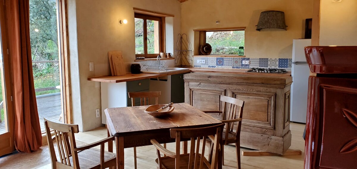 Cadre idyllique pour ce charmant loft de 49m2 classé 3 étoiles, au premier étage de notre maison. Prestations soignées dans une ancienne magnanerie intégralement restaurée alliant confort moderne et caractère traditionnel. Le gîte est entièrement équipé (chauffage par poêle à bois). Rivière sauvage, grand espace de verdure et forêts aux alentours, cuisine extérieure et terrasse privative vous accueilleront également pour passer de beaux moments de déconnexion. À seulement 20 min des Vans.
