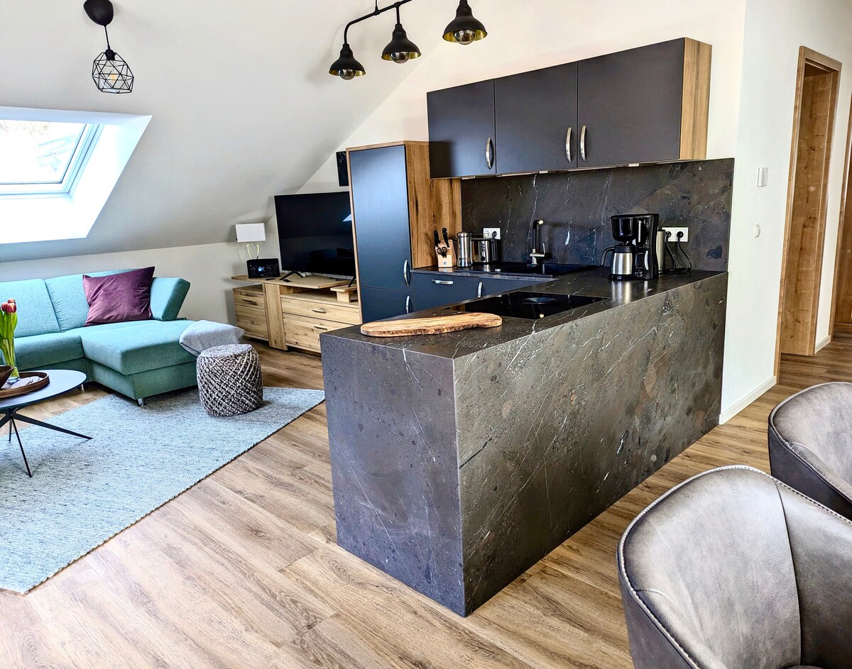 Beautifully restored home "Die Alpe" in Garmisch. We call this apartment Gams or mountain goat. The Gams has natural stone and oak wood floors, a kitchen with cozy seating area, living room, bedroom, second open loft bedroom and modern bathroom. Explore the loving details to be found throughout the apartment. Our goal is that you look forward to returning "home" at the end of a full day of sports or sightseeing. You can walk to shops/restaurants/bars in 5 min. Enjoy and relax during your stay!