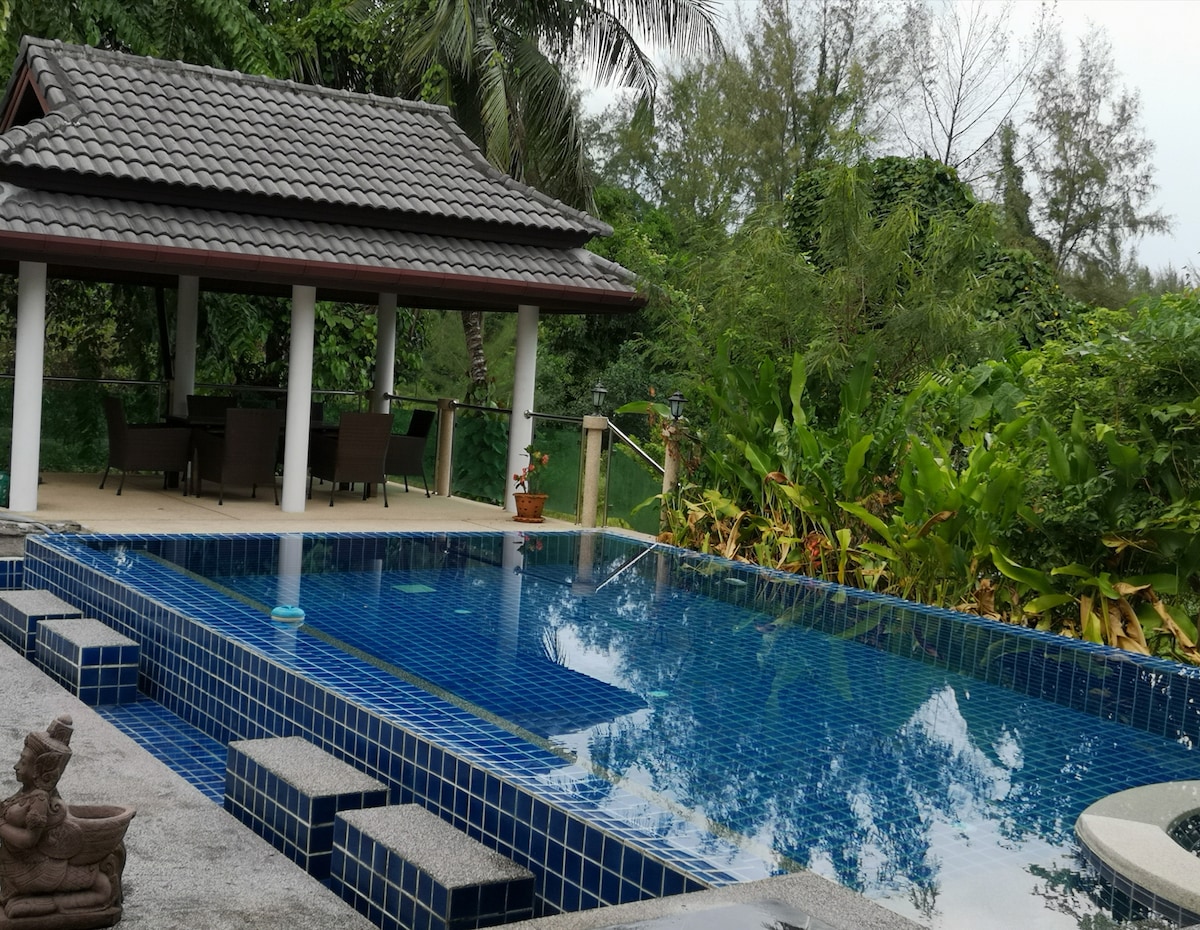 Vila za one koji traže mirno i opušteno okruženje u isto vrijeme tako blizu plaže, samo 800 metara do plaže Banglut. Vila uključuje sve osnovne potrebe za porodicom ili grupom (maksimalno 6 osoba), sopstvenu privatnu bazensku salu prema šumi s pticama koje tone. Postoji jedan obližnji restoran udaljen samo 500 metara, a restoran na plaži udaljen oko 1 km. Supermarket je otvoren non-stop, a večera je jeftina, a tu je i mašina za banke. Potrebno je da stignete na konj u roku od 10 minuta.