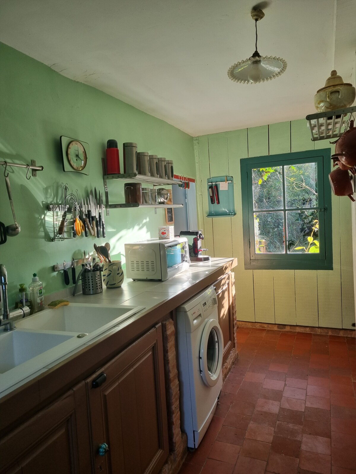 Ancien atelier photo réaménagé de 90 m2 offrant une belle hauteur sous plafond et un puits de lumière. Il se situe à côté de notre maison principale au milieu d'un terrain de 6500m2. La décoration y est vintage, ethnique et bohème. Déjeuner au soleil ou dîner sous le puits de lumière, la maison est aussi agréable à l'intérieur qu'à l'extérieur. Particulièrement adaptée aux rêveurs, artistes et voyageurs, lassés des locations aseptisées... Pour une durée différente, n'hésitez pas à me solliciter