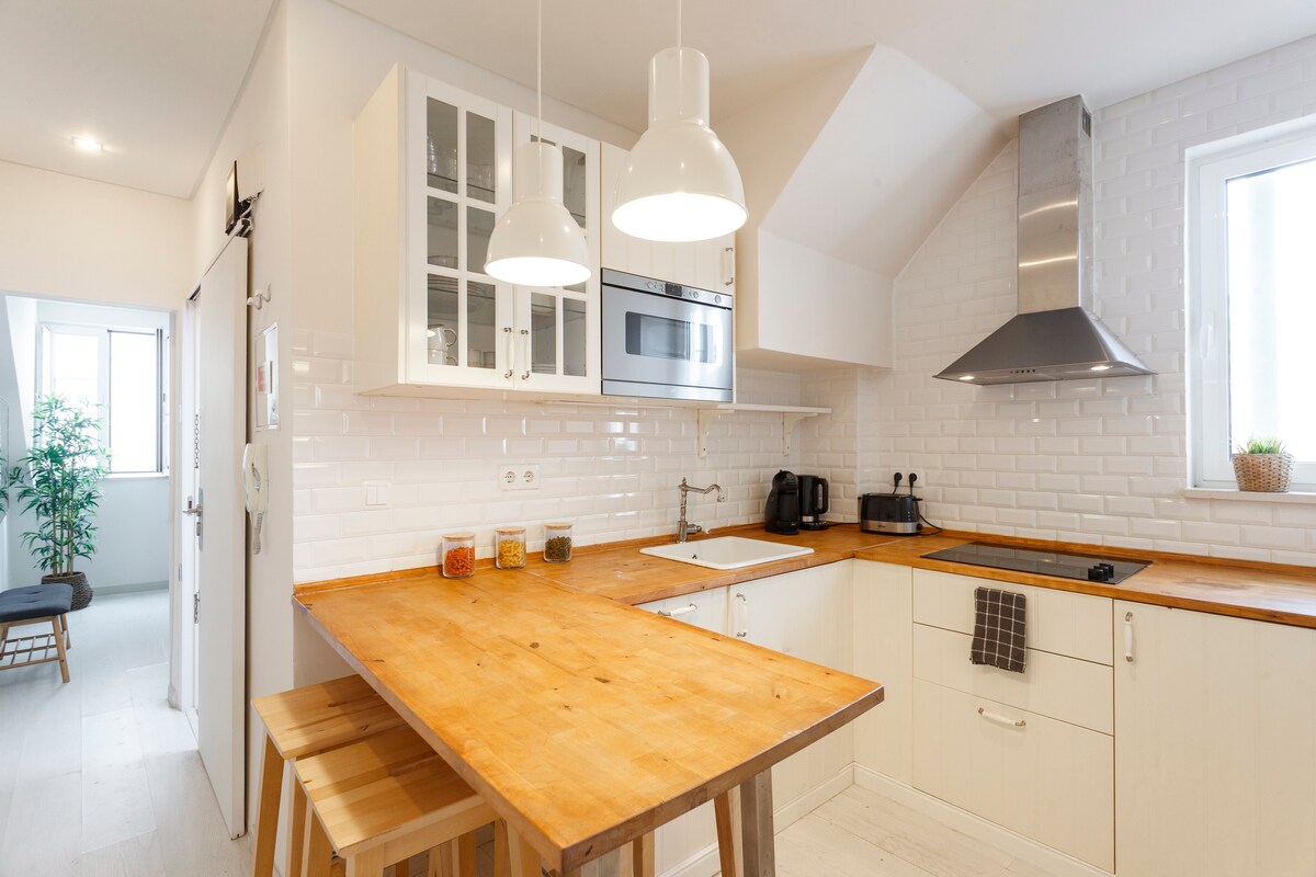 Udoban i moderan stan sa jednom spavaćom sobom, pažljivo uređen sa mnogo dobrog ukusa. Zgrada je novoizgrađena i udaljena je samo nekoliko koraka od pijace Ribeira, na centralnom mjestu Lisabona. Ima dva lifta, tako da nema stepenica! Nudimo parking mesto bez dodatnih troškova! Ako želite da ga koristite, obavestite nas kada pošaljete rezervaciju. Parking se preporučuje samo za kompaktne automobile, ex VW Polo, Renault Captur, Audi A3.