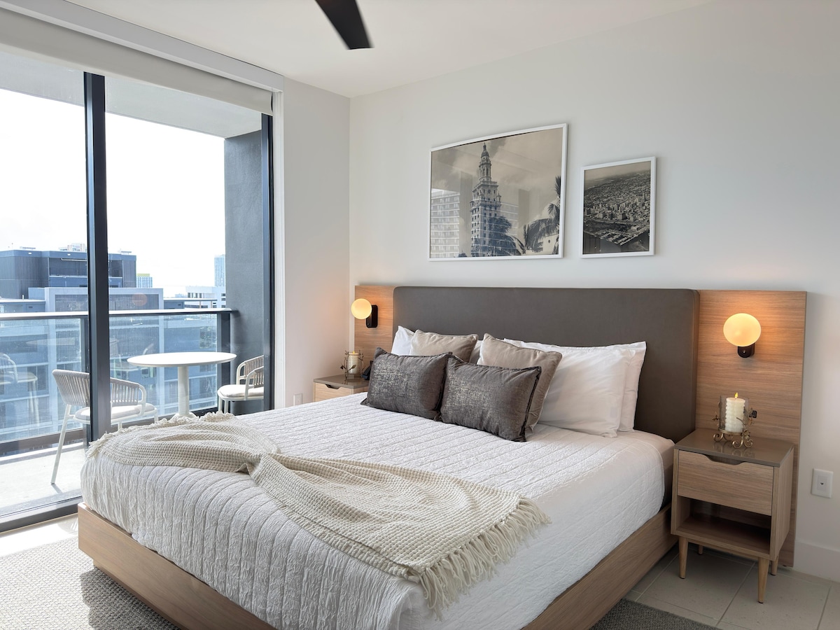 Ceo luksuzni stan u Quadru u Dizajnerskom okrugu. Potpuno opremljen - besplatan parking, kafa, Wi-Fi i kablovska. Zgrada ima sadržaje na šestom spratu, uključujući fitnes centar, salon sa zajedničkim prostorom i igraonicu, spoljašnju trpezariju sa roštiljem i odličan bazen. Uživajte u ekskluzivnim popustima za goste u okolini. Prošetajte do stotina dizajnerskih prodavnica, restorana, barova, umjetničkih galerija i još mnogo toga! 10 minuta vožnje do međunarodnog aerodroma u Majamiju, 15 minuta vožnje do Majami Biča.