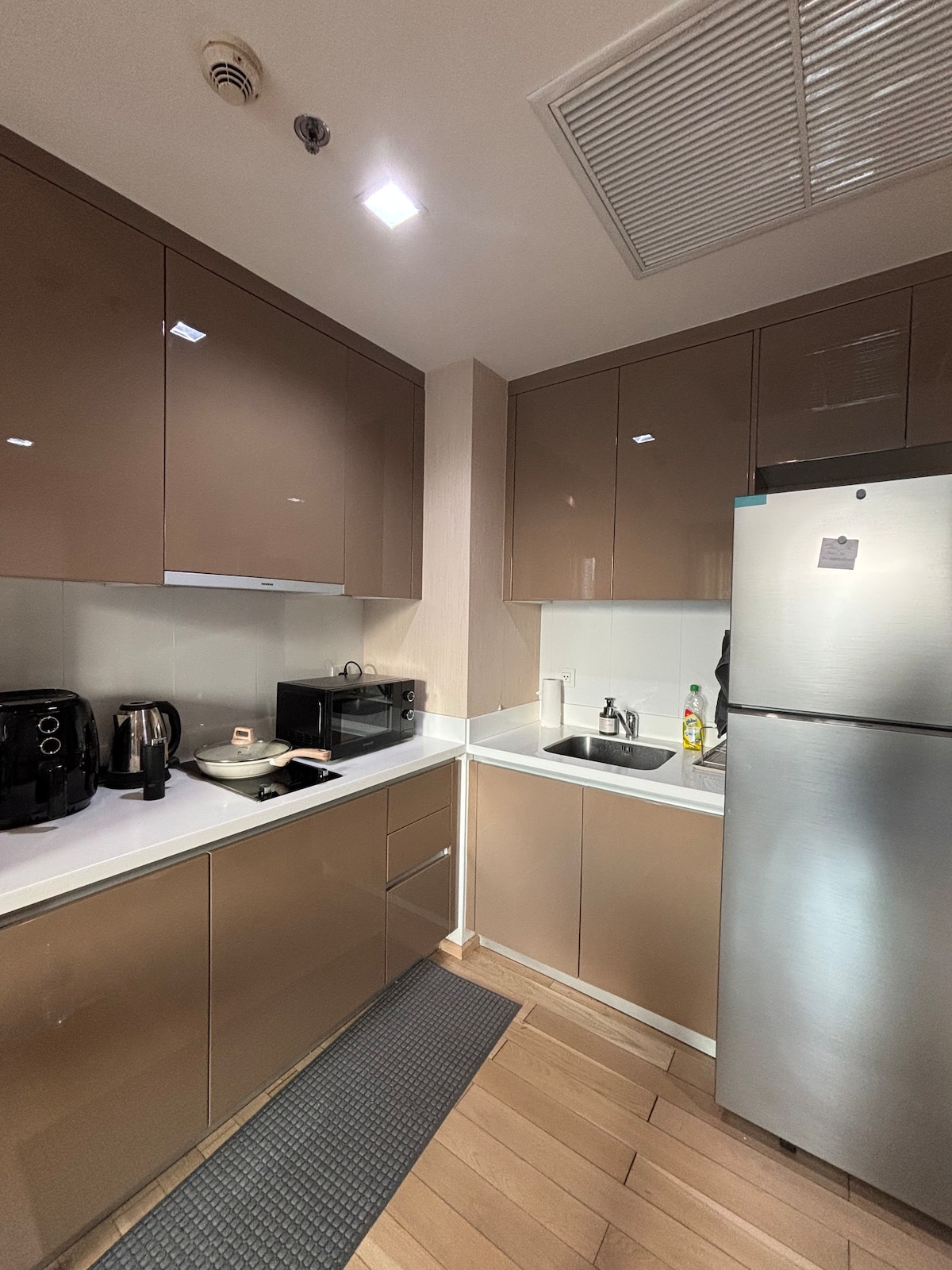 Moderan i potpuno namješten jednosoban stan u Shine@Thonglor, savršen i za kratkoročne i za dugoročne boravke. Uživajte u udobnom bračnom krevetu, potpuno opremljenoj kuhinji, Smart TV-u, brzom Wi-Fi-u, mašini za pranje veša i privatnom balkonu. Zgrada nudi vrhunske sadržaje, uključujući bazen na krovu, teretanu i bezbjednost non-stop. Nalazi se u popularnom Tongloru, samo nekoliko minuta od BTS-a, vrhunskih kafića, restorana, bolnica i supermarketa. Idealno za rad ili slobodno vrijeme.
