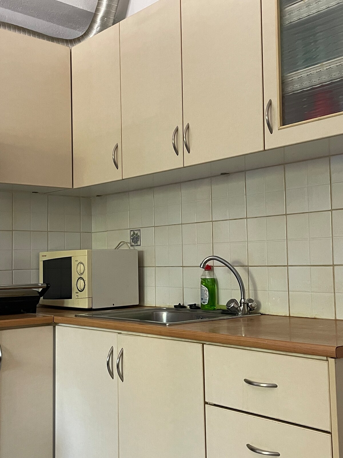 Potpuno opremljen studio apartman u mirnom dijelu grada u blizini svih sadržaja, 3 minute hoda od autobuske i taksi stanice. Deo je privatnog bloka stanova sa domaćinima koji žive odmah iznad. Tu je bračni krevet (120 cm) idealan za parove. Tu je i prostrani balkon.