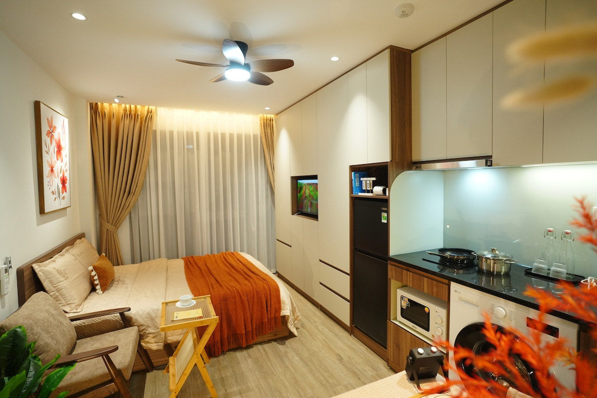 Welcome to Aurelia Apartments – a stylish and peaceful living space near West Lake (Tay Ho). Our cozy, modern apartment is filled with natural light, making it an ideal choice for solo travelers, couples, or business trips in Hanoi. From Aurelia Apartments, it’s just 500 m to West Lake, 1 km to Lotte Mall Tay Ho, and conveniently located on the main route to the airport, offering easy access while still providing a green, relaxing environment.