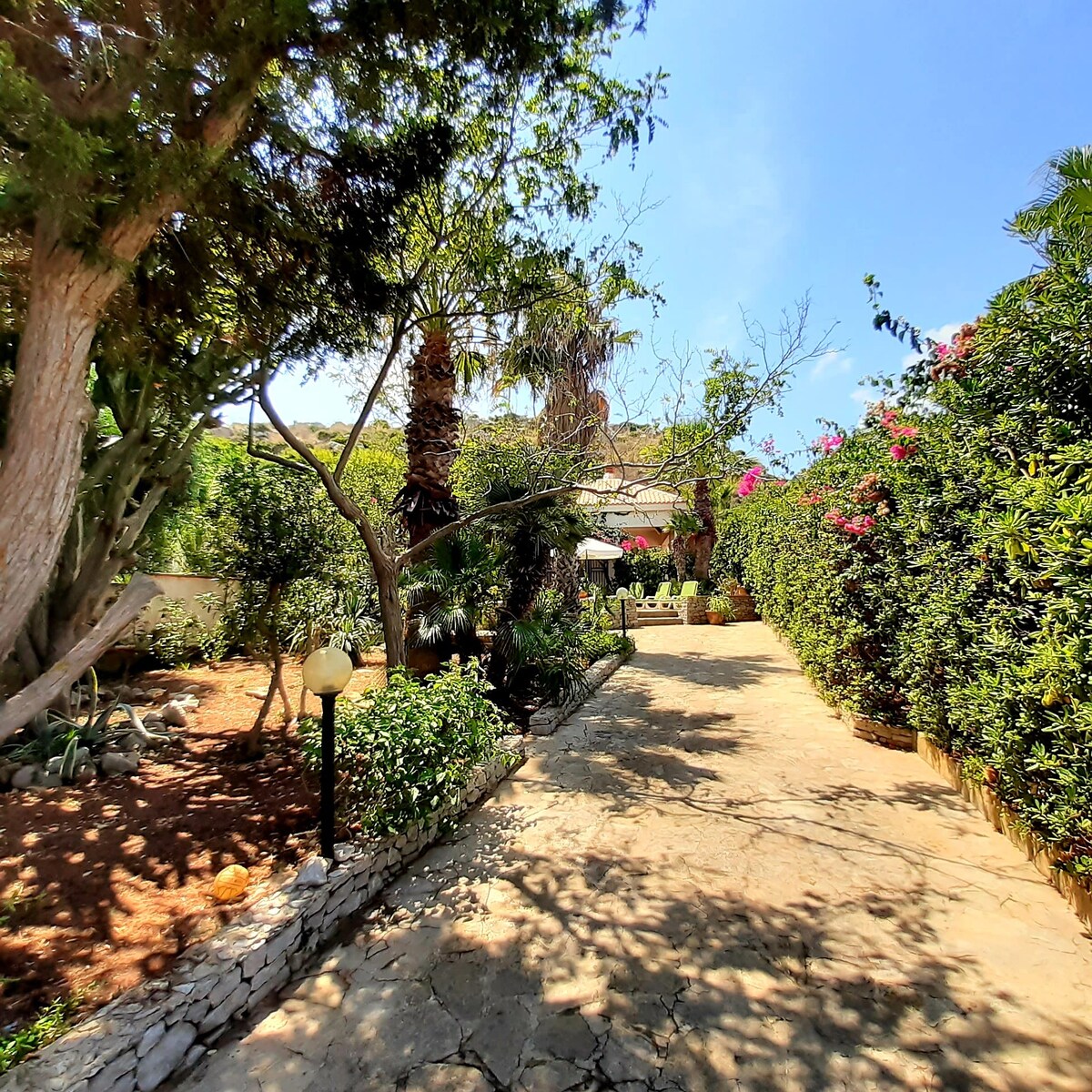 Nezavisna vila u sklopu rezidencije udaljene oko 1,5 km od sela i plaže. Mediteranska bašta je jaka, velika, ekskluzivna i opremljena svime. Dvije velike terase. Kuhinja i spoljni tuš. Možete uživati u predivnom pogledu na Monte Kofano, Eris i Egadi. Kuća je opremljena svim udobnostima. Ima dve spavaće sobe: bračni krevet i jedna sa dva kreveta za jednu osobu, dnevna soba sa kaučem na razvlačenje i pametnim TV-om, klima-uređaj, Wi-Fi, stolica za ljuljanje i roštilj.