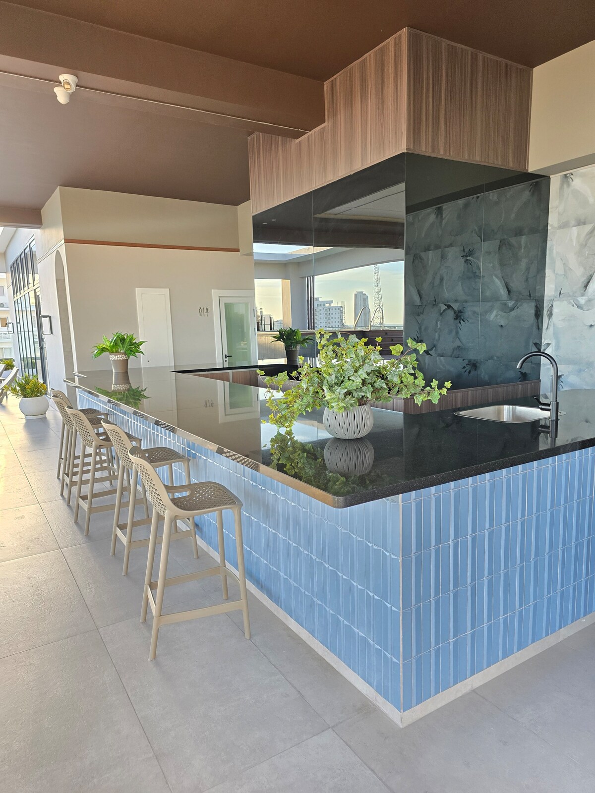 This place has a strategic location: located in a fully equipped tower. You will have AC, wifi, smart tv, private indoor parking, common area with infinity pool, gym with boxing ring, cardio area and weights, outdoor terrace with chairs and furniture, BBQ bar area, music and more. You will be able to enjoy a fantastic, comfortable and safe experience. Located in the most exclusive and central area of the city. One step away from restaurants, supermarket and bars.