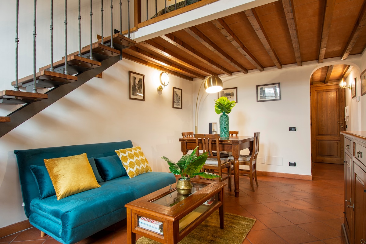 Ovaj ekskluzivni apartman u srcu Firence nudi pogled na Bruneleskijevu kupolu koji oduzima dah i udaljen je samo nekoliko minuta hoda od Duomo, Piazza della Signoria, Galerije Ufici i Ponte Vekija. Renoviran je vrhunskim materijalima, ima klima-uređaj, potpuno opremljenu kuhinju, mašinu za sudove i mašinu za pranje veša. Svetli dnevni boravak i šarmantna spavaća soba u potkrovlju čine ga savršenim za udoban i nezaboravan boravak u najčarobnijem gradu Italije.