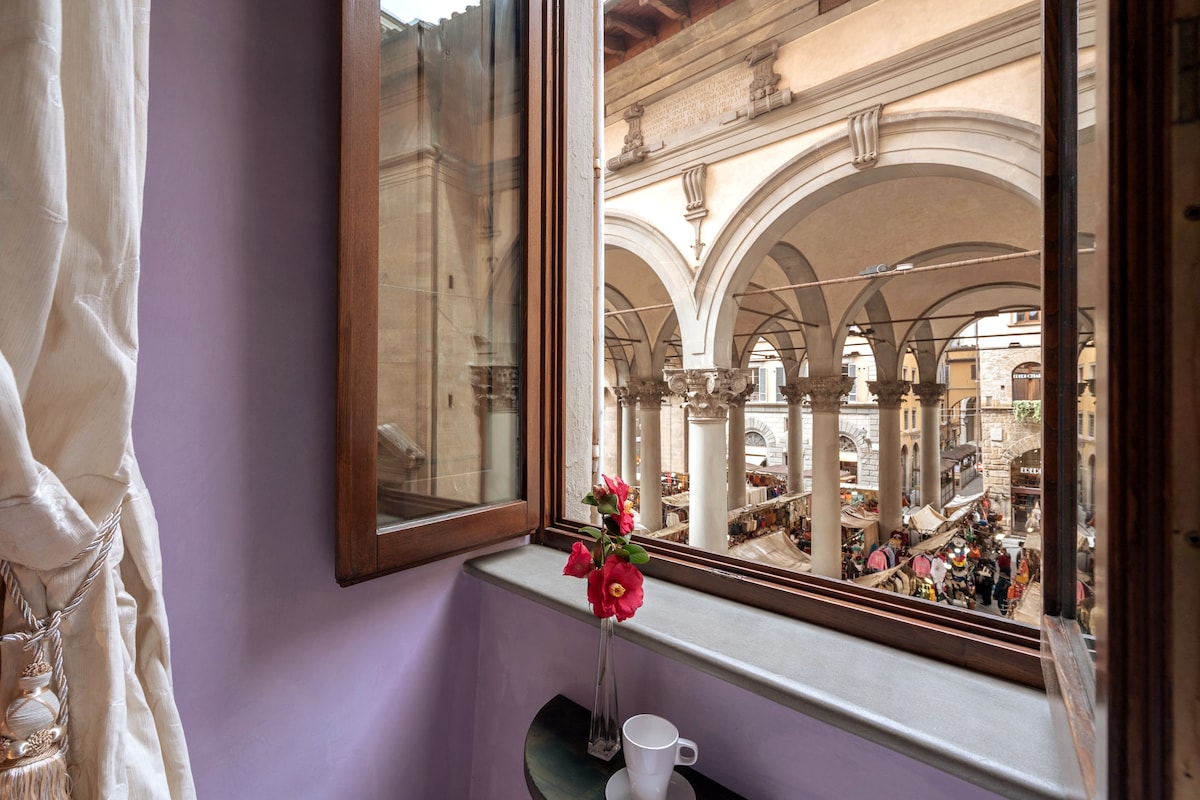 Appartamento di pregio in palazzo storico, recentemente ristrutturato, dotato di aria condizionata, riscaldamento e wifi illimitato. E' situato al 4 piano con ascensore, con doppio affaccio su Piazza della Signoria e vista spettacolare su Palazzo Vecchio e Galleria degli Uffizi. L'appartamento è luminoso e accogliente, ha un ampio soggiorno con comodo divano letto alla francese, TV, camera con letto matrimoniale, cucina completa con tutto il necessario per cucinare e ampio bagno con doccia.