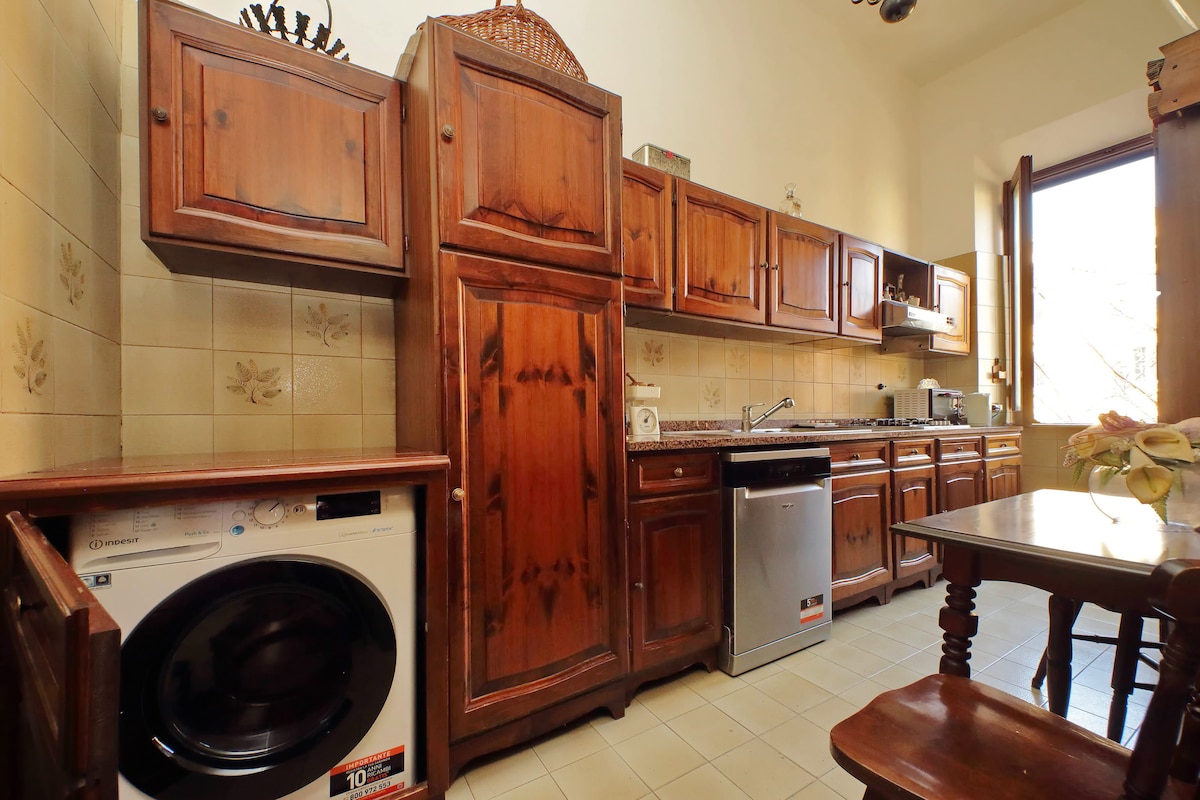 Enjoy a coffee at the marble breakfast bar, relax in the cozy window seat, or dine on the spacious terrace. This elegant apartment blends wood, marble, and traditional ceramics in a warm, refined style. Designed by renowned Roman interior designer Alessandra Danese, it holds the Plum Guide Luxury Apartment Certificate of Excellence. Guests enjoy full amenities including Wi-Fi, Nespresso machine, and a furnished terrace. Located in authentic Rione Monti, loved by locals.