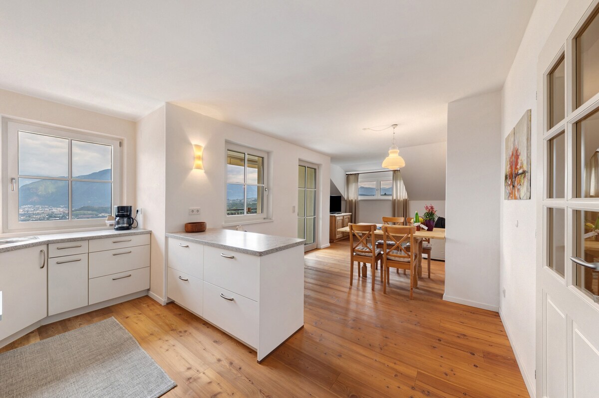 Nalazi se 3–4 km izvan centra Bolcana. 680 m nadmorske visine Do naše lokacije možete da dođete SAMO automobilom, a ona nudi neuporediv pogled i pristup aktivnostima na otvorenom. Pobegnite od haosa gradskog života i napunite dušu boravkom u našem udobnom planinskom apartmanu. Probudite se uz zadivljujući pogled na Dolomite i zvuk cvrkutanja ptica. Uživajte u pešačenju, biciklizmu i istraživanju spomenika prirode pod zaštitom UNESCO-a. Pijte vino na balkonu pod nebom punim zvezda. U cenu je uključena Ritten kartica (!)