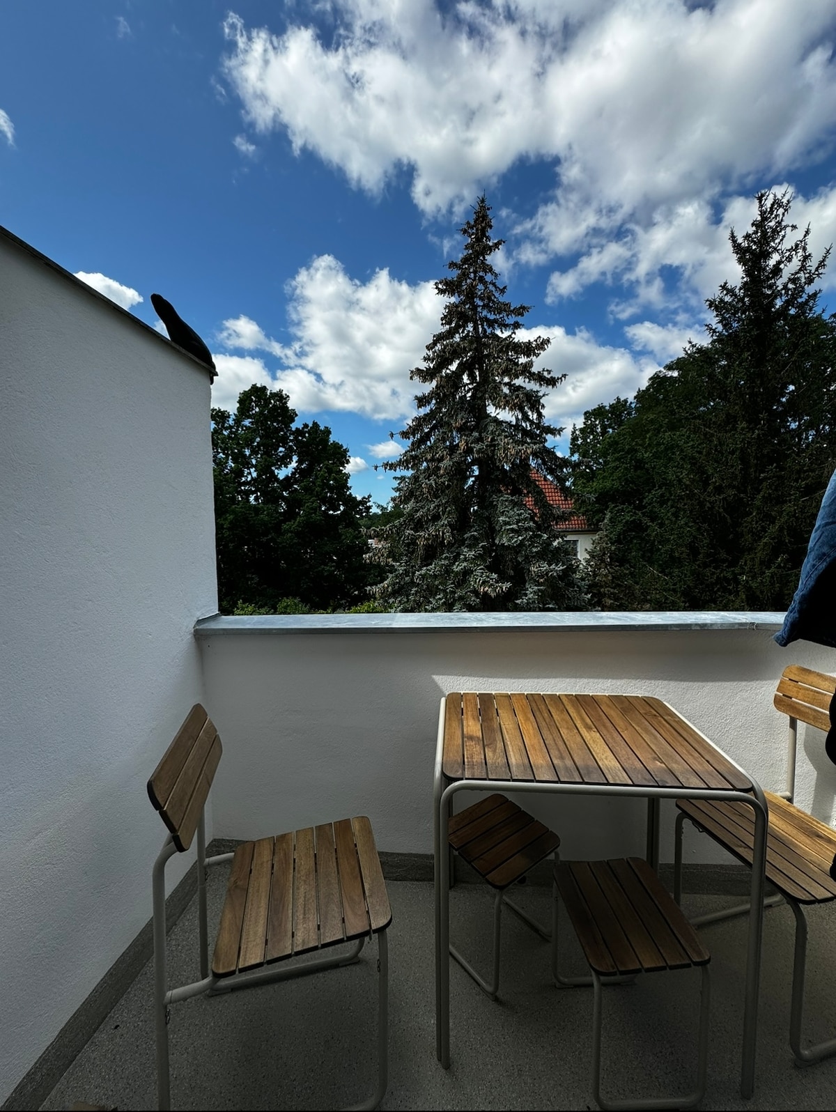 Lehne dich zurück und entspanne dich – in dieser ruhigen, stilvollen Unterkunft. Dein Blick geht ins Grüne über Gärten bis zum Wald, nur von Fern ganz leise hörst du die Stadt. Mit U-Bahn und Bus kommst du zügig in das Zentrum. Lidl und Aldi sind am U-Bahnhof, viele Geschäfte und unsere Lieblingskonditorei sind zwei Stationen entfernt. In der Wohnung bist du ungestört, kannst kochen, baden, faul sein, auf dem Balkon sitzen und ein Glas Wein trinken. Und Berlin erkunden.
