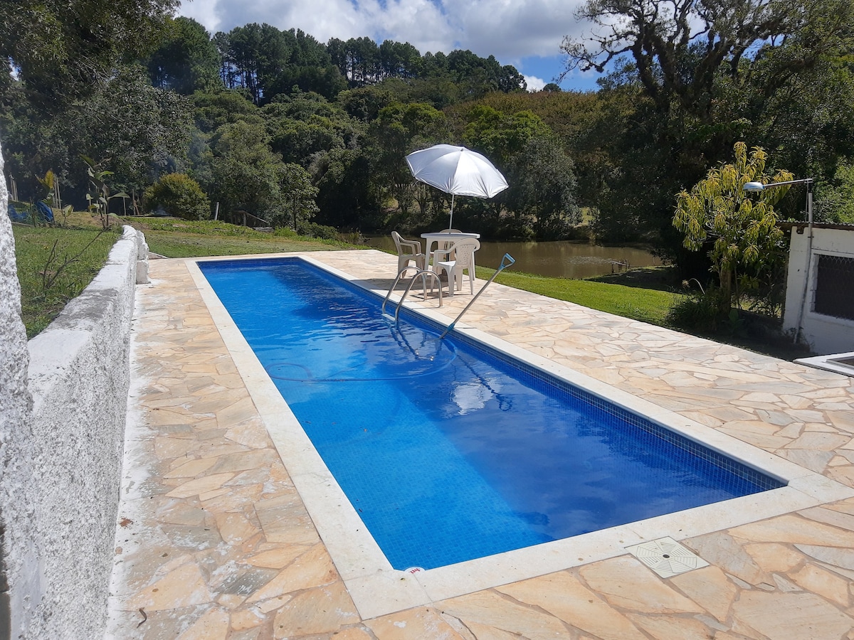 Chácara with native forest. Rustikalna kuća s balkonom, privilegovanim pogledom na jezero i šumu. Mjesto sa divljim pticama, čistim vazduhom i tišinom. Objekat ima brzi Wi-Fi koji vam omogućava da bezbjedno radite na mreži. Bazen sa hidromasažom i vodopadom. Kiosk sa roštiljem i šporetom na drva. 2 viseće ležaljke