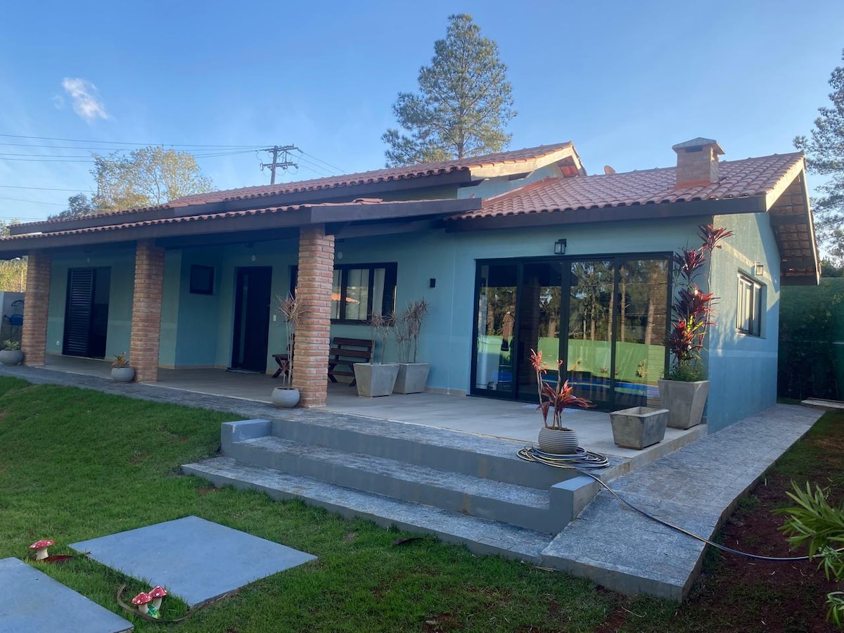Casa aconchegante com piscina e churrasqueira.