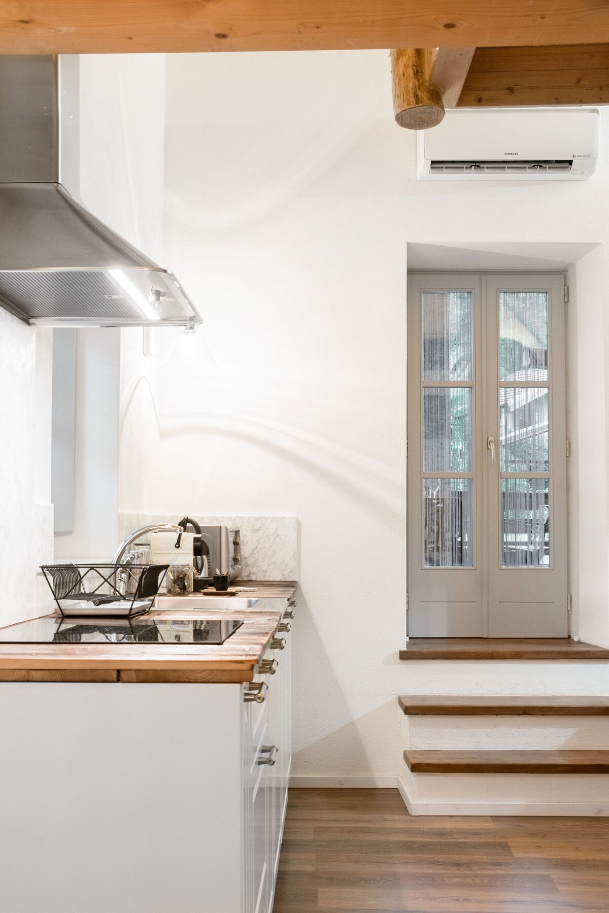 Stan se nalazi na drugom spratu naše kuće, na neku vrstu farme. Postoji lep pogled na Alpe i našu baštu. Drveni podovi, 3 spavaće sobe i 2 kupatila. Apartman ima bračni krevet, kauč i kuhinju u spavaćoj sobi . Još jedna soba sa 2 kreveta i kaučem, i treću sobu sa bračnim krevetom koji mogu da razdvojim u dva kreveta za jednu osobu.