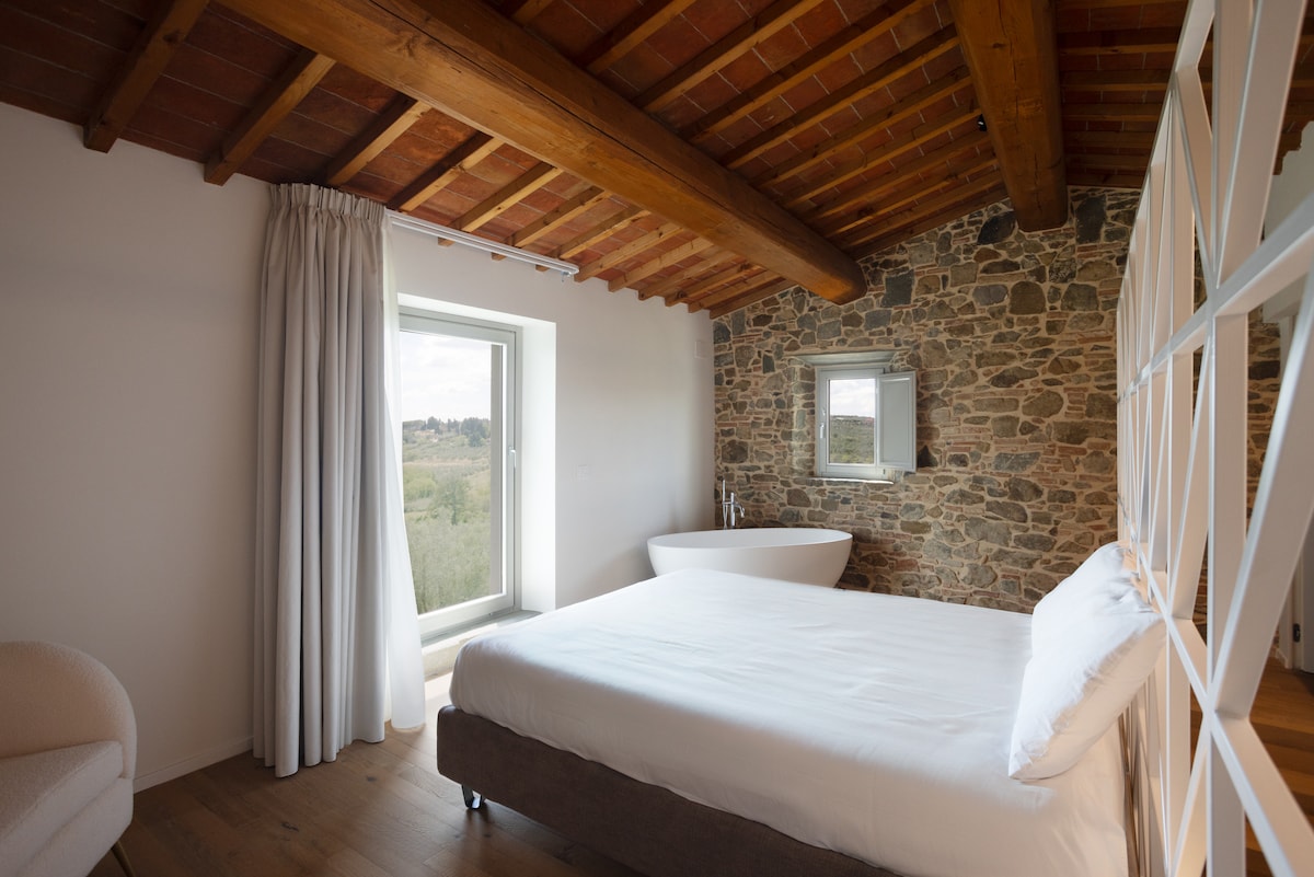 Tenuta Barosi, apartman Izabela - Doživite šarm Tenuta Barosi, nedavno renoviranog agroturizma 2024. godine. Smješteno na vrhu brda usred maslinika, ovo mirno utočište u Malmantilu, srednjovjekovnom selu u blizini Firence, nudi zadivljujući pogled i modernu udobnost.