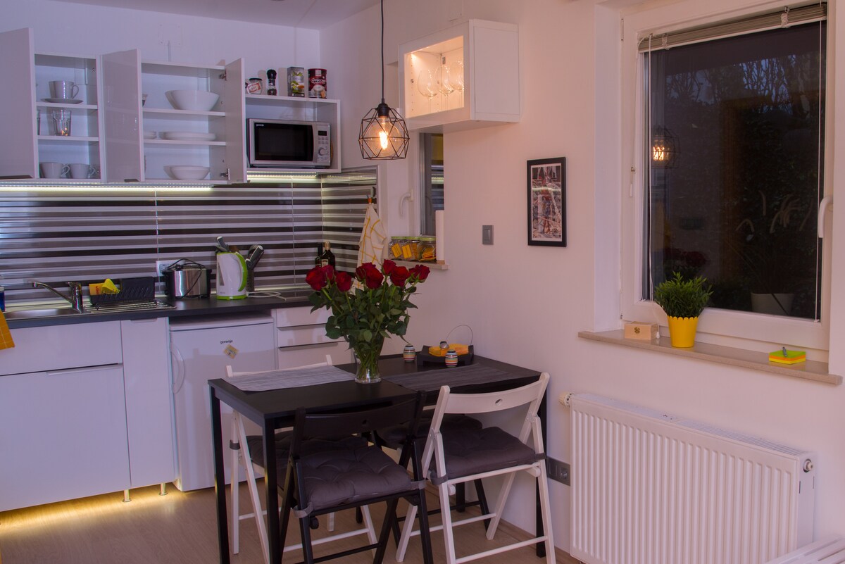 Newly renovated in 2025. Floor heating. Ideal for 4, comfortable for 6. It is a ground floor apartment (55m2) with its own entrance. It has free private parking, high speed WIFI&TV, washer/dryer, fully equipped kitchen, two bedrooms with King size beds (180x200), living room with a sofa/double bed , a bathroom with shower & terrace with table and chairs. It is located in a quiet neighborhood - Hofer/Aldi is 600m away, bus directly linked to city center 300m . 5min or 3km to city center by car.
