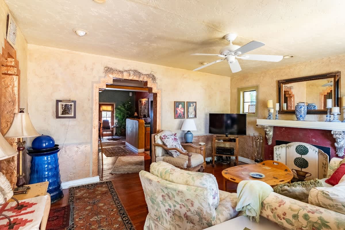 Discover historic charm at Bolsius House. Originally crafted from Fort Lowell ruins, this 3-bed, 3-bath haven by artist Charles Bolsius boasts scenic Santa Catalina Mountain views. Nestled in Old Fort Lowell Historic District, enjoy a salon-style living room, kitchen, sitting room, dining room, and patios/gardens. Close to dining, shopping, hiking; just 20 mins from Downtown and 6 miles from U of A. Immerse in Tucson's allure, blending history, luxury, and privacy. Your perfect retreat awaits.