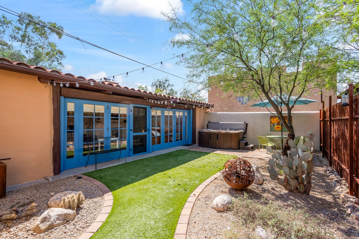 Uživajte u elegantnom doživljaju u ovom udobnom istorijskom smještaju koji se nalazi u centru grada, sa drvenim podovima i modernom kuhinjom. Odličan život u Tusonu na otvorenom sa ognjištem na gas, kaučima na terasi, roštiljem, barom i hidromasažnom kadom (zbog ekstremnih ljetnih vrućina, hidromasažna kada je dostupna od oktobra do maja). Vrlo mirna četvrt u blizini 4. avenije i U A. Vaša ljubazna domaćica, Sandra, živi u privatnom studiju u pozadini.