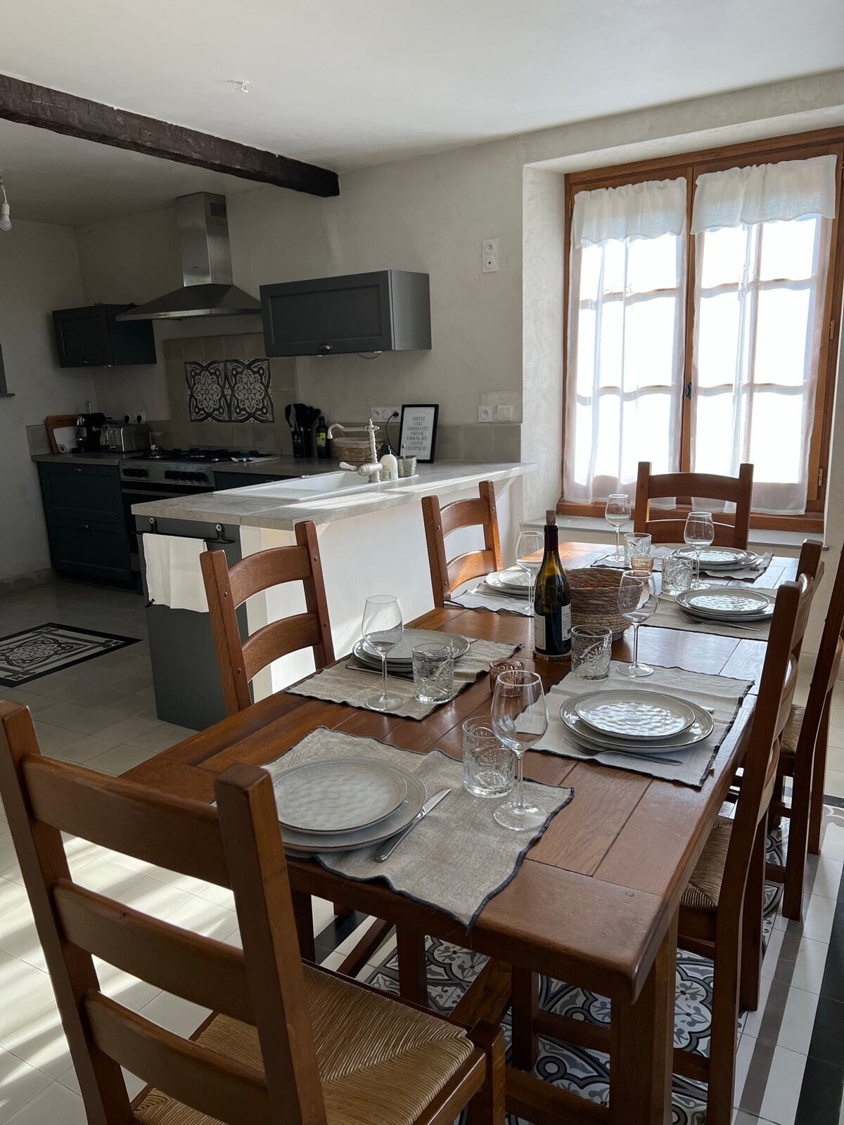 Renovirane seoske kuće za 10–12 ljudi. Bašta, ognjište, roštilj, teren za petank, ležaljke… 1. objekat: opremljena kuhinja i trpezarija, 2 spavaće sobe sa bračnim krevetima (jedna sa kadom), kupatilo, međusprat sa 2 kreveta za jednu osobu (pristup uz strmo stepenište). 2. objekat: jedna spavaća soba sa bračnim krevetom + jedna spavaća soba sa bračnim krevetom + kreveti na sprat, kupatilo. Pekara, kafić i restoran u selu. Supermarket i mesara su udaljeni manje od 3 minuta vožnje