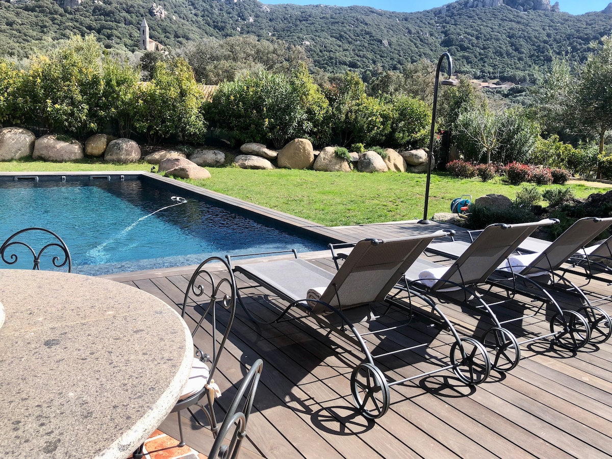 🌿 U Cantonu di l 'Arti – Architect villa with heated pool and mountain view located in Sotta 🌄 Smještena u netaknutom prirodnom okruženju, U Cantonu di l 'Arti je izuzetna vila u kojoj se moderna arhitektura savršeno stapa s divljom ljepotom korzičkog pejzaža. Dizajnirana da se uklopi u okolnu vegetaciju i stijene, ova vila vas poziva da doživite prefinjen boravak, kombinujući udobnost, mir i zadivljujući pogled. BAZEN JE ZATVOREN OD 1. DECEMBRA DO 1. APRILA
