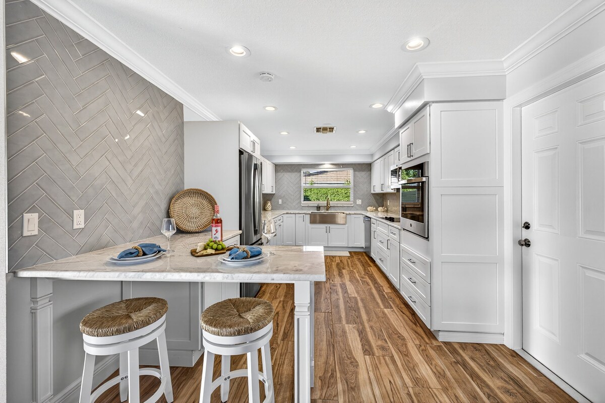 VAU! Vaš SAVREMENI BAZEN iz snova je kompletan sa POTPUNO RENOVIRANIM enterijerom i oživljenim pejzažom. Imajte na umu da nema ZABAVA! 3 spavaće sobe/2 kupatila, dom nudi nadogradnje u kuhinji, trpezariji, porodici, glavnom kupatilu i dnevnim sobama. Predivan dom takođe uključuje POTPUNO NOVE uređaje od nerđajućeg čelika. U okviru otvorenog tlocrta dolazi do glatkog prelaska iz kuhinje u prostranu i savršenu za zabavu porodične sobe opremljene kaminom na drva. Glavna spavaća soba ima kupatilo i ugradni ormar, dok su druge dvije spavaće sobe na suprotnoj strani doma radi privatnosti. Maksimalno 6 odraslih osoba ( možemo da razmotrimo još dvoje dece, potrebna je rezervacija). Ne više od tri automobila. Imajte na umu da imamo sigurnosne kamere napolju i u garaži. Imamo 1 kameru ispred kuće, 2 kamere u dvorištu (jedna u blizini bazena i jedna u blizini bazena), takođe 1 kameru koja se nalazi unutar garaže. Postoje kamere za detekciju pokreta. Sve kamere su u upotrebi i snimaju video non-stop tokom vašeg boravka. OGRAĐENO dvorište pruža privatnost dok uživate u bazenu i drvenoj terasi. Smešten u ćorsokaku, komšija nudi mirnu i opuštajuću atmosferu sa ljubaznim susedima. Masažna kada radi samo zimi (samo po zahtevu). Možda ćete morati da platite dodatnu naknadu. LOKACIJA, LOKACIJA, dom koji se nalazi u srcu okruga Pinellas, bliže plaži, tržnom centru, restoranu, svim potrepštinama koje možete da zamislite.