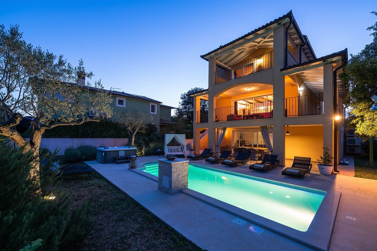 Beautiful luxury villa in Linardići with unobstructed view of the sea. The house can accommodate 6-8 persons. The guest has on their disposal a private heated pool, jacuzzi and outdoor sauna. The brand new, tastefully furnished villa has 3 bedrooms, 2 bathrooms, living room, kitchen and dining room, another toilette, spread over 2 floors. Fully equipped, air-conditioned, ideal for a family or group of friends. Free WiFi.