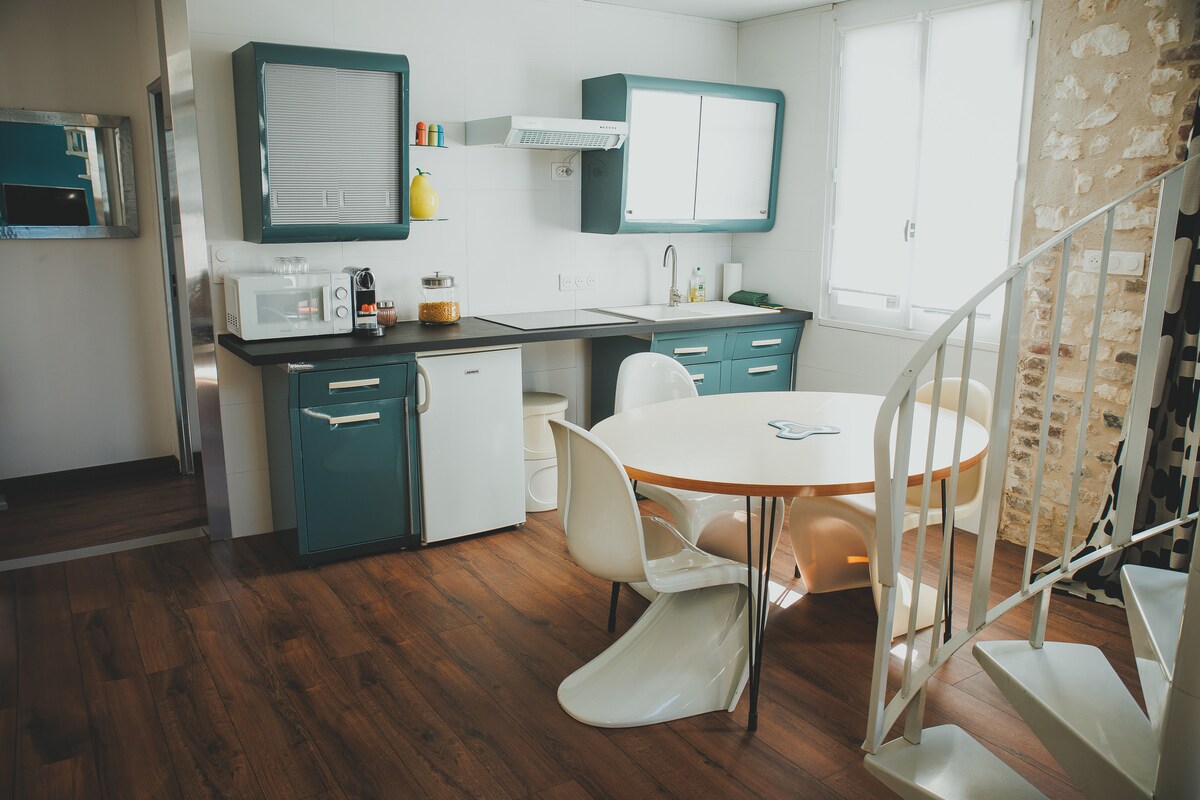Šarmantna garsonjera✨, smeštena na 3. spratu lepe normanske kuće🏡, u srcu Luvijea, a istovremeno tiha. Udobna i funkcionalna atmosfera sa prostorom za spavanje, kaučem, stolom i opremljenom čajnom kuhinjom🍽️ (mikrotalasna, frižider, posuđe). Atipični stil potkrovlja kupatilo🚿 sa toaletom i umivaonikom, pazite na nizak plafon Posteljina je obezbeđena🧺. Besplatan parking u plavoj zoni. Idealno za poslovni ili kratak boravak. Upozorenje: niski plafon u kupatilu