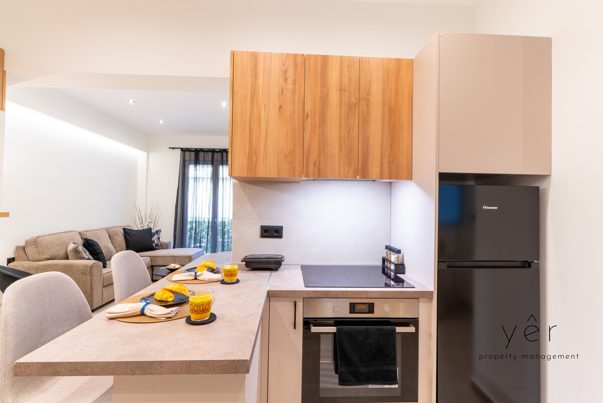 Elegantan, prostran (47 m2) jednosoban stan u prizemlju, novoizgrađen 2022. godine. Uređen sa svakom posvećenošću detaljima, prostor ima za cilj da gostima pruži prijatno iskustvo. Idealno za parove ili porodice, koji se nalaze u mirnom delu Pireja, a ipak su udaljeni samo 5 minuta od luke automobilom. Ovo je mesto koje treba da provedete jednu noć pre nego što uhvatite brod za grčka ostrva ili za duže boravke, jer je potpuno opremljeno i kuhinja je pogodna za pripremu obroka.