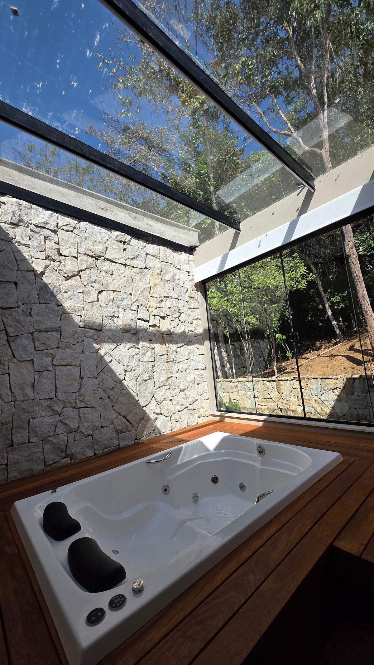 Refúgio romântico à beira de um lago particular, cercado por natureza e a apenas 200 m da Dutra. Chalé com cama queen, sofá-cama, ar-condicionado, projetor e deck privativo com vista para o pôr do sol. Banheiro com hidromassagem, duas duchas e pias. Cozinha completa com forno, airfryer, cafeteira e adega. Lago com acesso para stand-up e caiaque, fogo de chão e rede sob o céu estrelado. Perto de restaurantes como Outback, Madero e Coco Bambu. Conforto, natureza e romantismo em um só lugar.