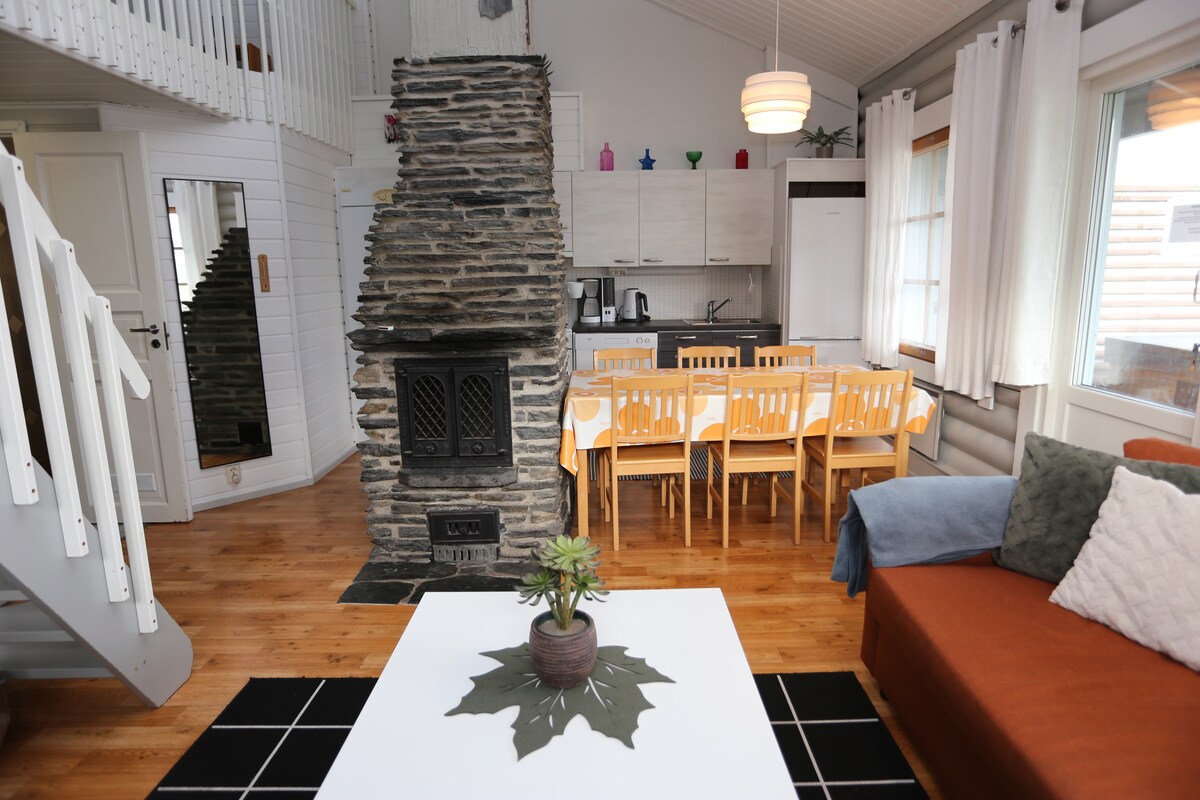 Unique vacation villa near Himos slopes with a view of the northern slope. 5 minutes by car to the slope. Well-maintained winter trails pass by the villa, with multiple pairs of snowshoes free to use. Outdoor hot tub (jacuzzi) can be rented for 160€/stay. Note: If you want bed linens and towels, they can be rented separately for 20 euros per person. This is a common practice for holiday cottages in Finland.